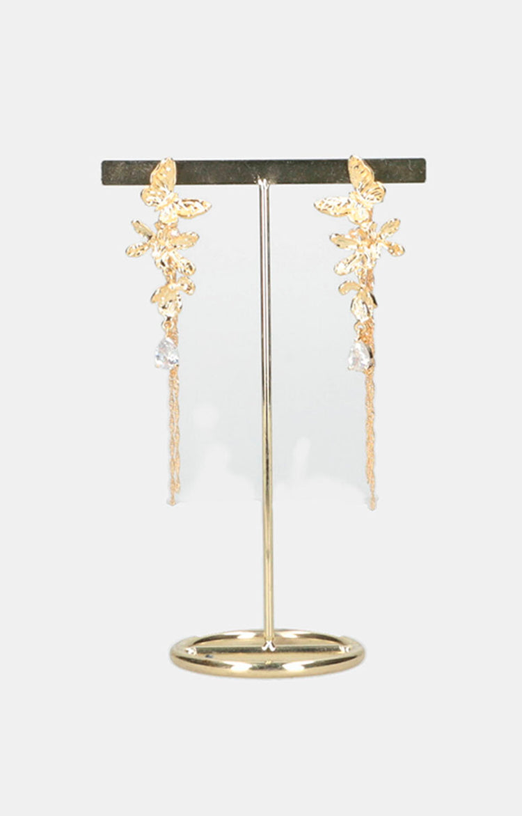 Estos aretes largos dorados, con un delicado dije en forma de mariposa, combinan ligereza y feminidad para complementar cualquier look de fiesta. Su diseño elegante realza tu estilo sin perder comodidad, siendo el accesorio ideal para ocasiones especiales donde buscas un toque sutil pero sofisticado.