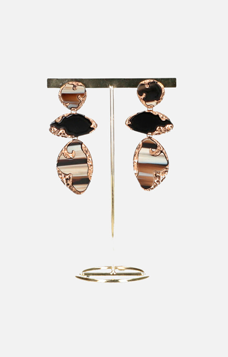 Este arete largo en acabado carey combina elegancia y sofisticación con detalles dorados sutiles que realzan su diseño. Su ligereza ofrece comodidad durante todo el día, siendo ideal para quienes buscan un accesorio distintivo y refinado. Perfecto para complementar tanto looks formales como casuales con un toque experto y delicado.
