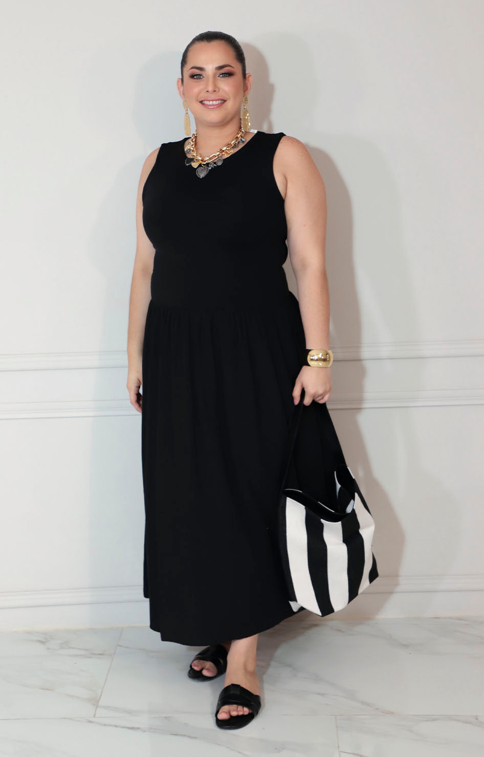 Este vestido negro de tirantes es una prenda infalible en tu clóset.