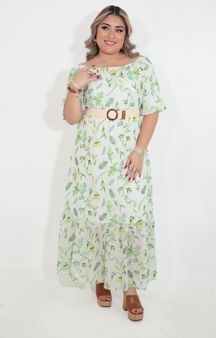¡Completa tu look de verano con el vestido verde estampado con cinturón! Con su diseño fresco y elegante, este vestido es perfecto para cualquier ocasión. El cinturón añade un toque de estilo y realza tu figura. ¡Siéntete segura y atractiva con este hermoso vestido!