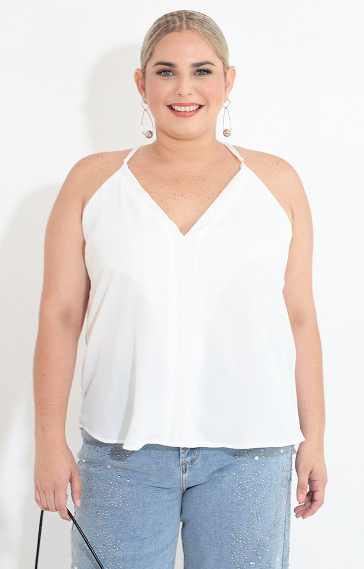 Esta blusa blanca combina una tela suave con tirantes delgados para brindar comodidad sin sacrificar estilo. Su diseño con bisel al frente y cuello en V aporta un toque elegante y femenino, ideal para crear looks sofisticados y versátiles. Perfecta para la temporada otoño 2025, su color atemporal facilita combinaciones con diversas prendas, garantizando una pieza esencial en cualquier guardarropa experto.