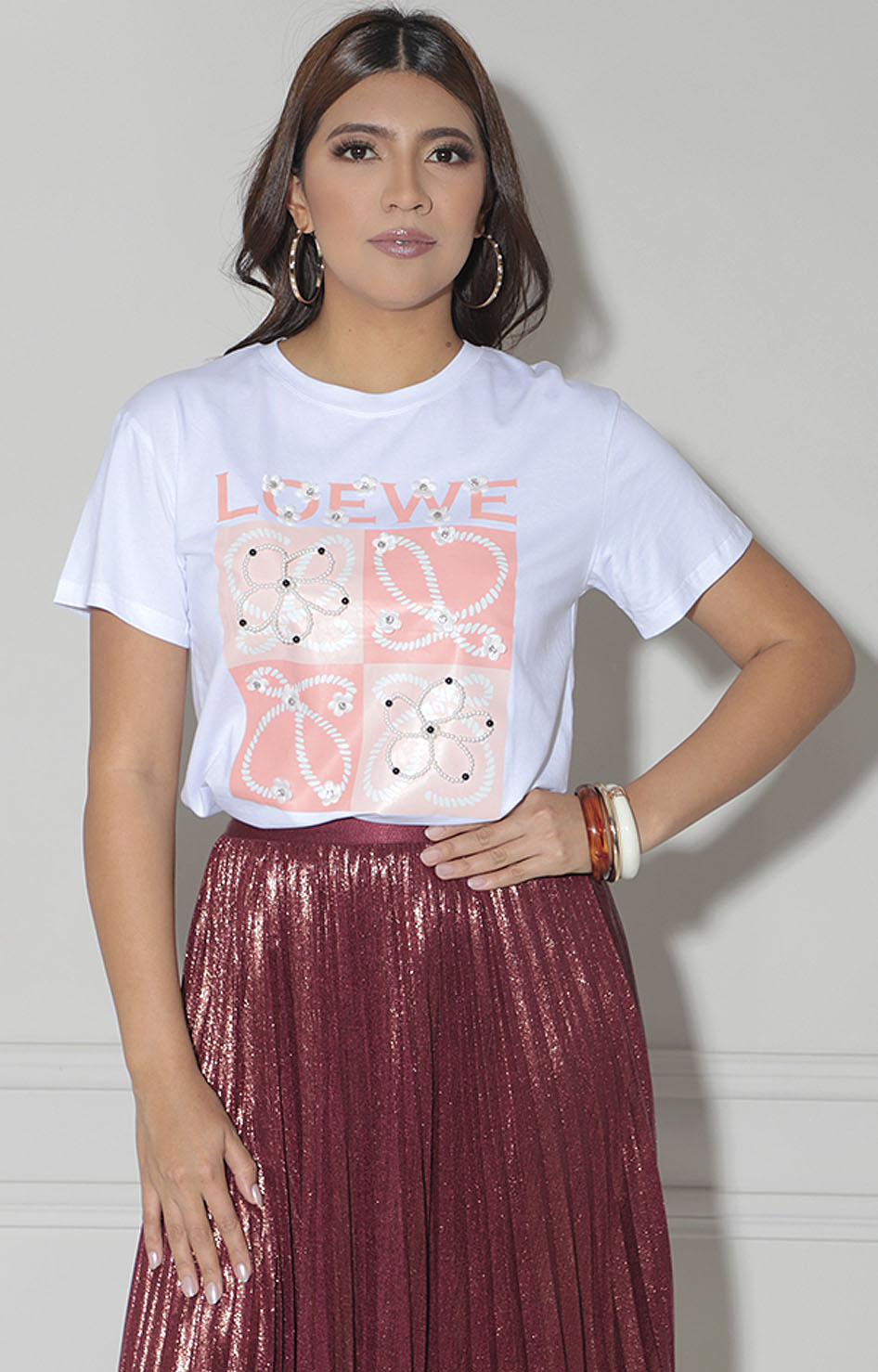 Blusa blanca confeccionada en tela de calidad premium con estampado elegante que añade movimiento y personalidad a tu guardarropa. Destaca por sus delicados detalles de perlas estratégicamente colocados que elevan el diseño con un toque sofisticado y refinado. Versátil y fácil de combinar, es la pieza perfecta para transiciones de estación, desde looks casuales hasta ocasiones más formales. Su corte favorecedor y acabados impecables garantizan comodidad sin comprometer el estilo.