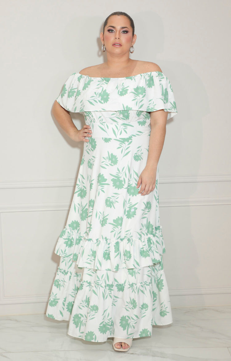 Elegante vestido verde straple que combina un hermoso estampado con un delicado volante. Su diseño sin tirantes realza tus hombros mientras el volante añade movimiento y feminidad. Perfecto para ocasiones especiales o para crear un look fresco y sofisticado en días cálidos.