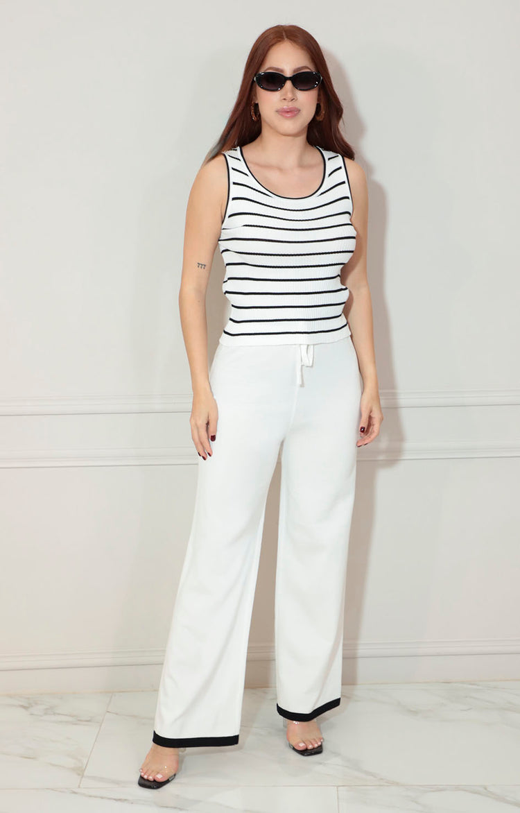 Este conjunto blanco con estampado de rayas combina elegancia y frescura, ideal para quienes buscan un estilo sofisticado y moderno. Su diseño versátil permite múltiples combinaciones, aportando un toque distintivo a cualquier ocasión. La calidad de los materiales asegura comodidad y durabilidad, haciendo de esta pieza una inversión práctica y estilizada para tu guardarropa.