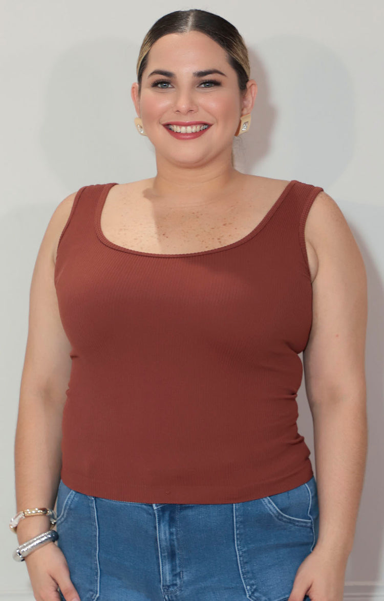 Suave al tacto con tirantes, y cuello redondo. Textura lineal, se amolda a la silueta.