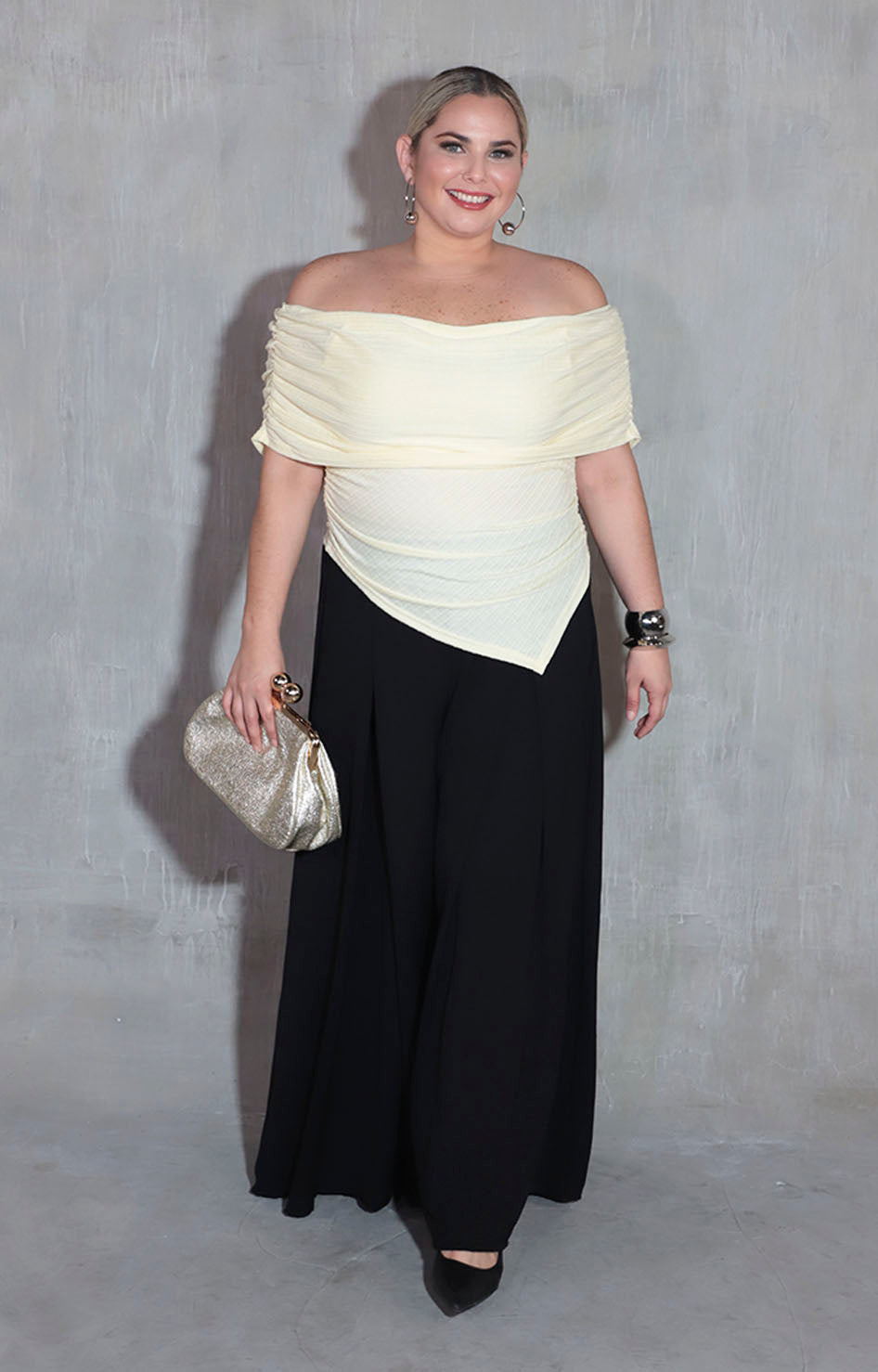 Blusa amarilla confeccionada en tela suave y elástica que se adapta perfectamente a tu cuerpo. Su diseño off-shoulder crea un look sofisticado y moderno, ideal para ocasiones especiales o para elevar tu estilo diario. La elasticidad de la prenda garantiza comodidad en cada movimiento, mientras que la suavidad del tejido proporciona una sensación agradable al contacto con la piel. Una pieza versátil que combina elegancia con practicidad.