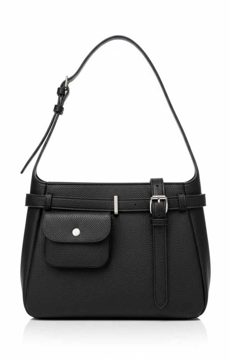 Bolsa negra confeccionada con materiales de calidad superior, diseñada para complementar cualquier atuendo con elegancia y versatilidad. Cuenta con un lazo ajustable que permite personalizar el ajuste según tus necesidades, garantizando comodidad y seguridad en el transporte de tus pertenencias. Su acabado impecable y estructura refinada la convierten en una pieza esencial para el día a día, perfecta tanto para ocasiones casuales como más formales. Un accesorio funcional que refleja buen gusto y atención al detalle.