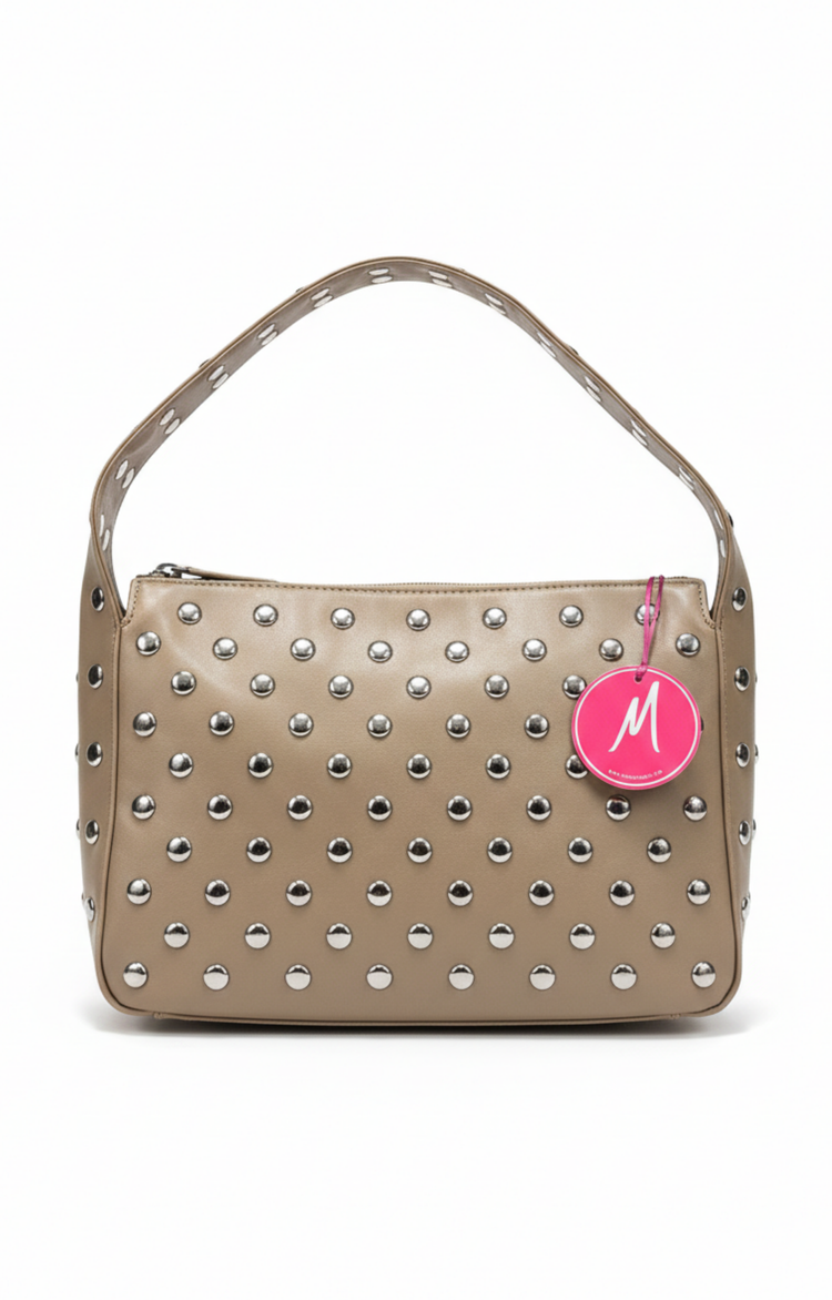 Bolsa versátil en tonalidad beige que combina elegancia con un toque audaz. Confeccionada con detalles de estoperoles estratégicamente distribuidos, esta pieza ofrece un acabado sofisticado ideal para complementar tanto looks casuales como más elaborados. Su diseño neutro la convierte en una inversión práctica para tu guardarropa, permitiéndote crear múltiples combinaciones sin esfuerzo. Perfecta para quienes buscan accesorios que trasciendan las tendencias pasajeras.