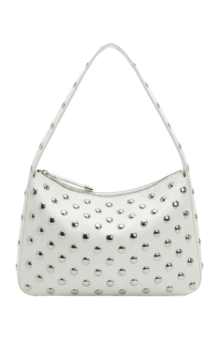 Bolsa blanca versátil confeccionada con materiales de calidad que combina elegancia minimalista con detalles modernos. Los estoperoles estratégicamente distribuidos añaden un toque de sofisticación y personalidad al diseño clásico. Perfecta para complementar tanto looks casuales como más formales, esta pieza versátil se adapta a cualquier ocasión. Su estructura práctica ofrece espacio suficiente para tus pertenencias diarias sin comprometer el estilo. Un accesorio imprescindible que eleva cualquier conjunto con su presencia discreta pero impactante.