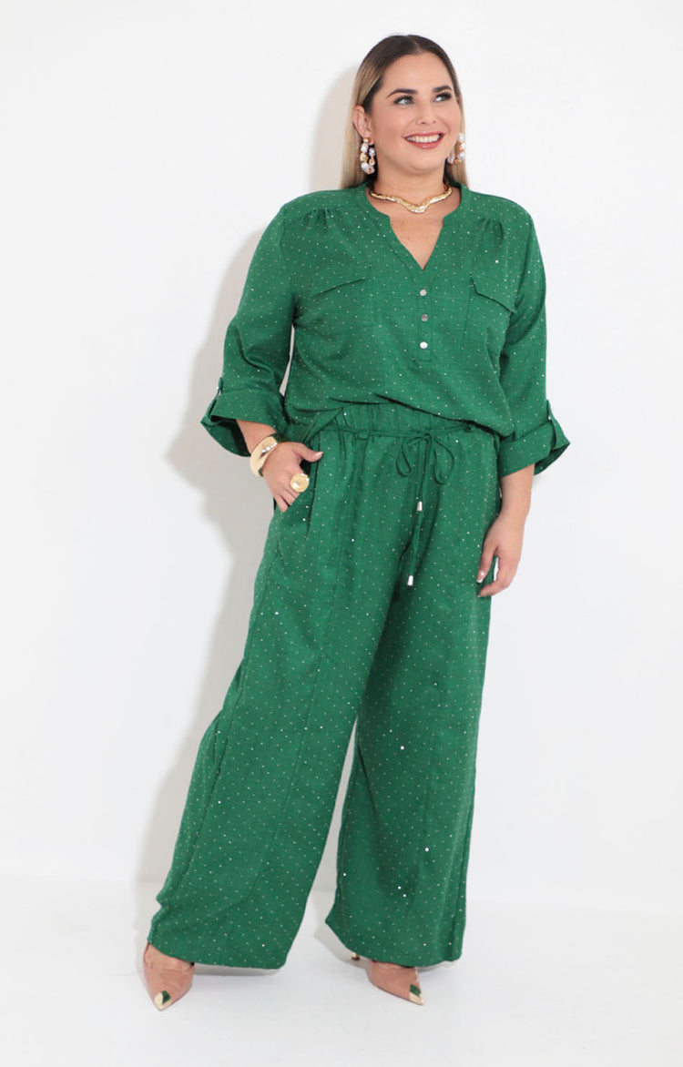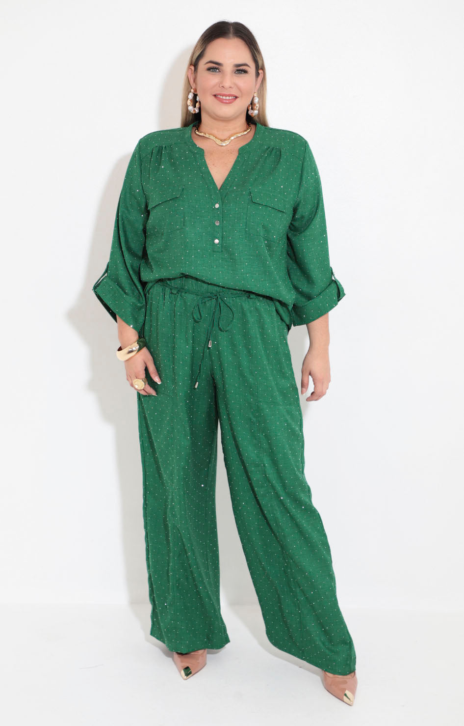 Esta blusa verde combina elegancia y comodidad con su tela satinada suave al tacto. Presenta mangas largas y un sutil brillo que aporta un toque sofisticado, mientras que el cuello mao ofrece un diseño moderno y pulido. Ideal para ocasiones especiales donde el estilo refinado es esencial.