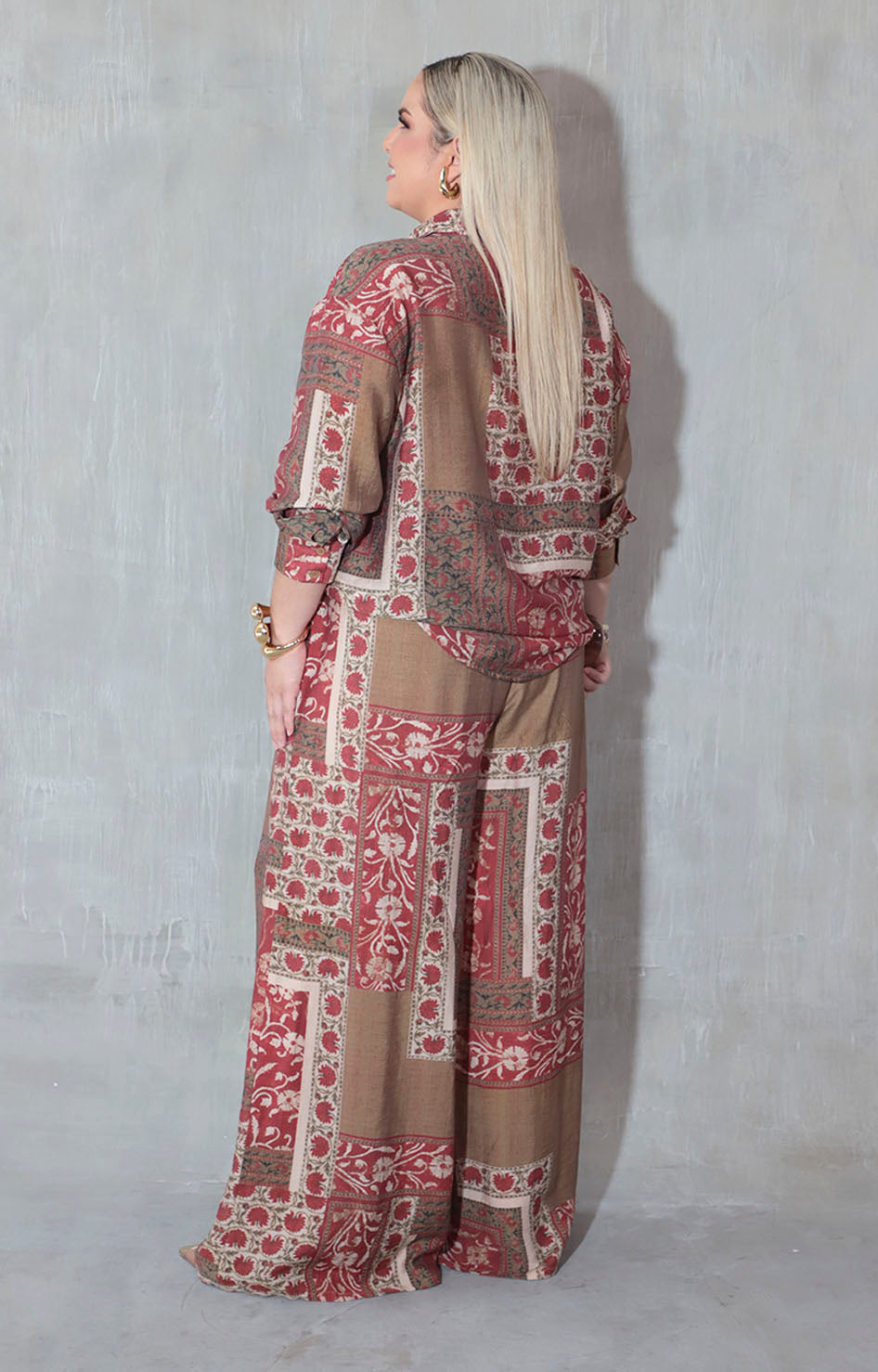 Conjunto café confeccionado en tela suave que proporciona comodidad durante todo el día. La blusa estilo camisera con manga larga ofrece versatilidad para diferentes ocasiones, mientras que el pantalón recto complementa perfectamente el diseño. Esta combinación clásica es ideal para crear un look pulido y sofisticado, perfecto tanto para el trabajo como para encuentros casuales. Una opción confiable que garantiza elegancia sin comprometer la practicidad.