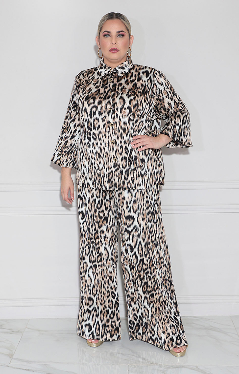 Conjunto versátil compuesto por blusa de manga larga con botones funcionales y pantalón a juego, ambas piezas lucen un estampado print contemporáneo. Diseñado para quienes buscan coherencia estilística sin sacrificar comodidad. La blusa ofrece estructura y elegancia gracias a sus mangas extendidas y cierre de botones, mientras que el pantalón complementa perfectamente la propuesta. Ideal para transiciones de estación y ocasiones que demandan un look pulido y coordinado.