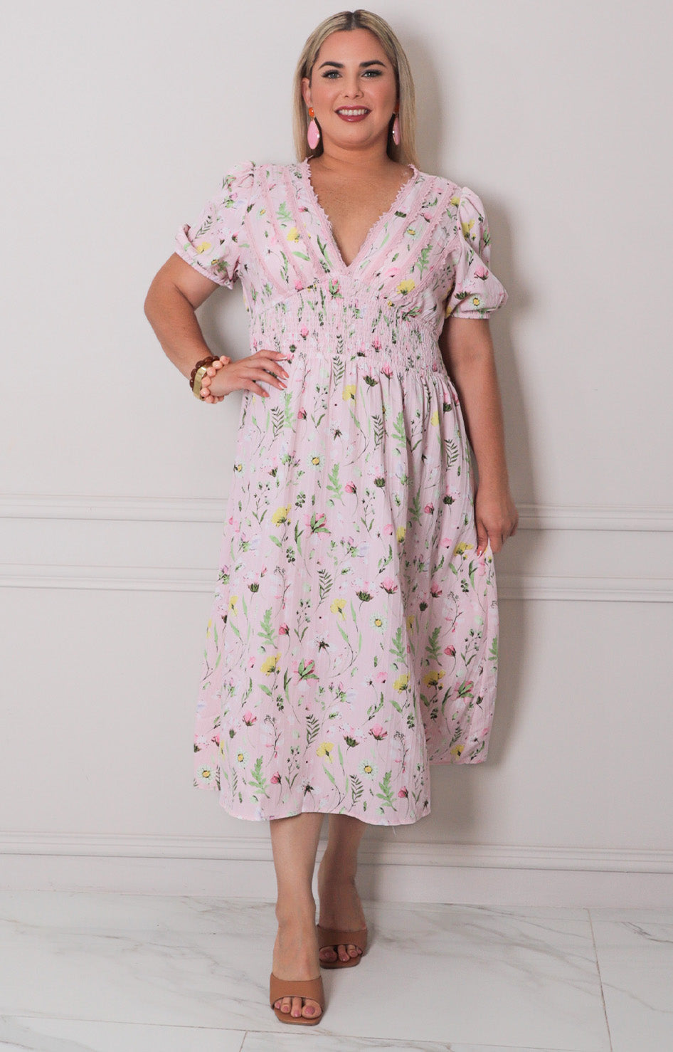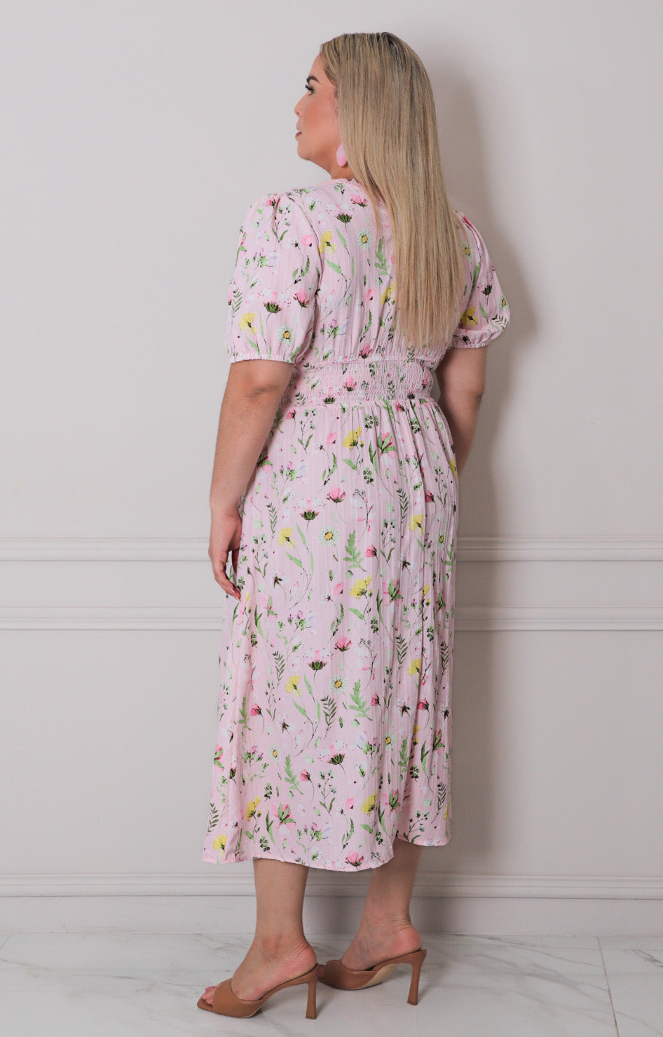 Vestido estampado floral con diseño delicado que combina elegancia y comodidad. Cuenta con cuello en V que favorece el escote, cintura elástica que se adapta a tu figura y mangas elásticas para un ajuste perfecto. Ideal para lucir fresca y femenina en cualquier ocasión, desde un día casual hasta una salida especial. La tela fluida permite movimiento libre mientras mantiene su forma. Un básico versátil que complementa cualquier estilo personal.