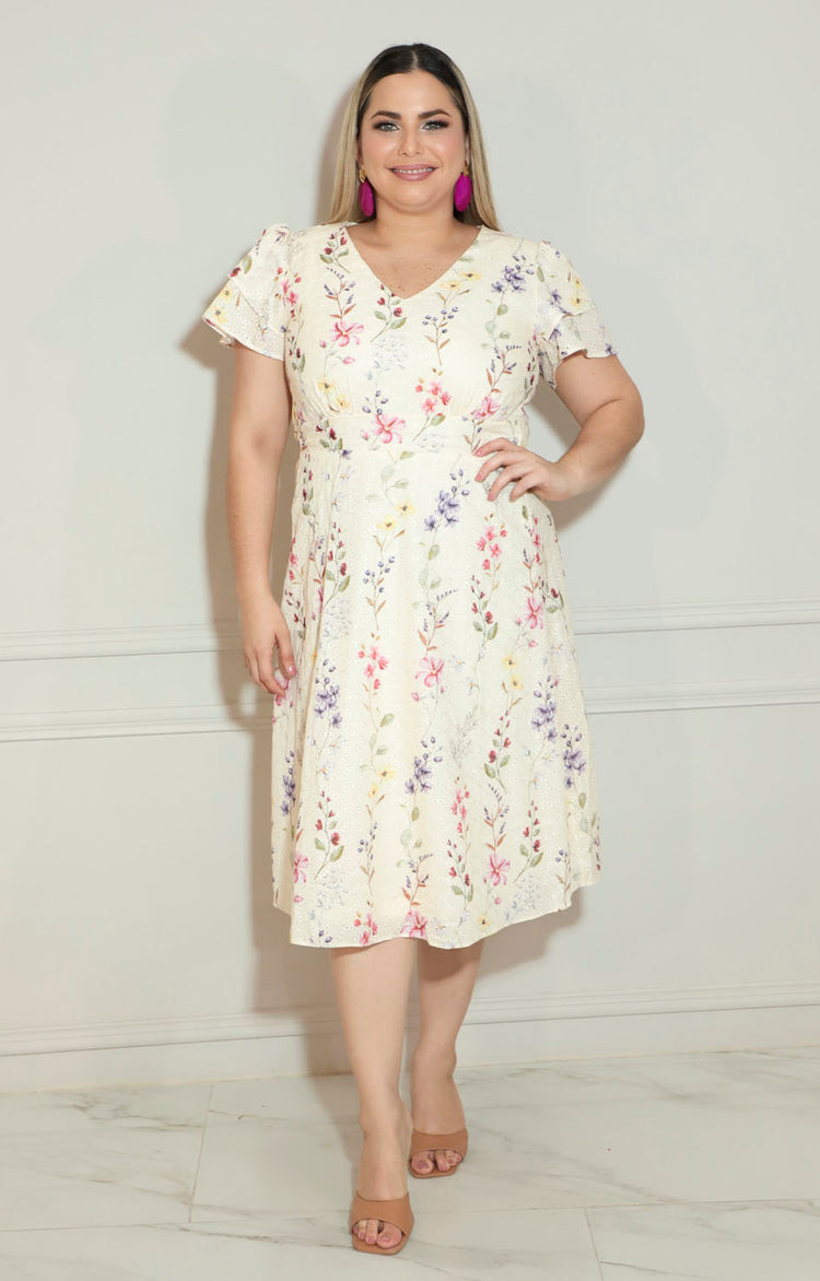 Este vestido beige con estampado floral combina elegancia y comodidad, ideal para diversas ocasiones. Su diseño incluye un cierre que facilita el ajuste y aporta un acabado pulido. La tela ligera y el patrón floral aportan un toque fresco y femenino, perfecto para lucir un estilo sofisticado y natural.