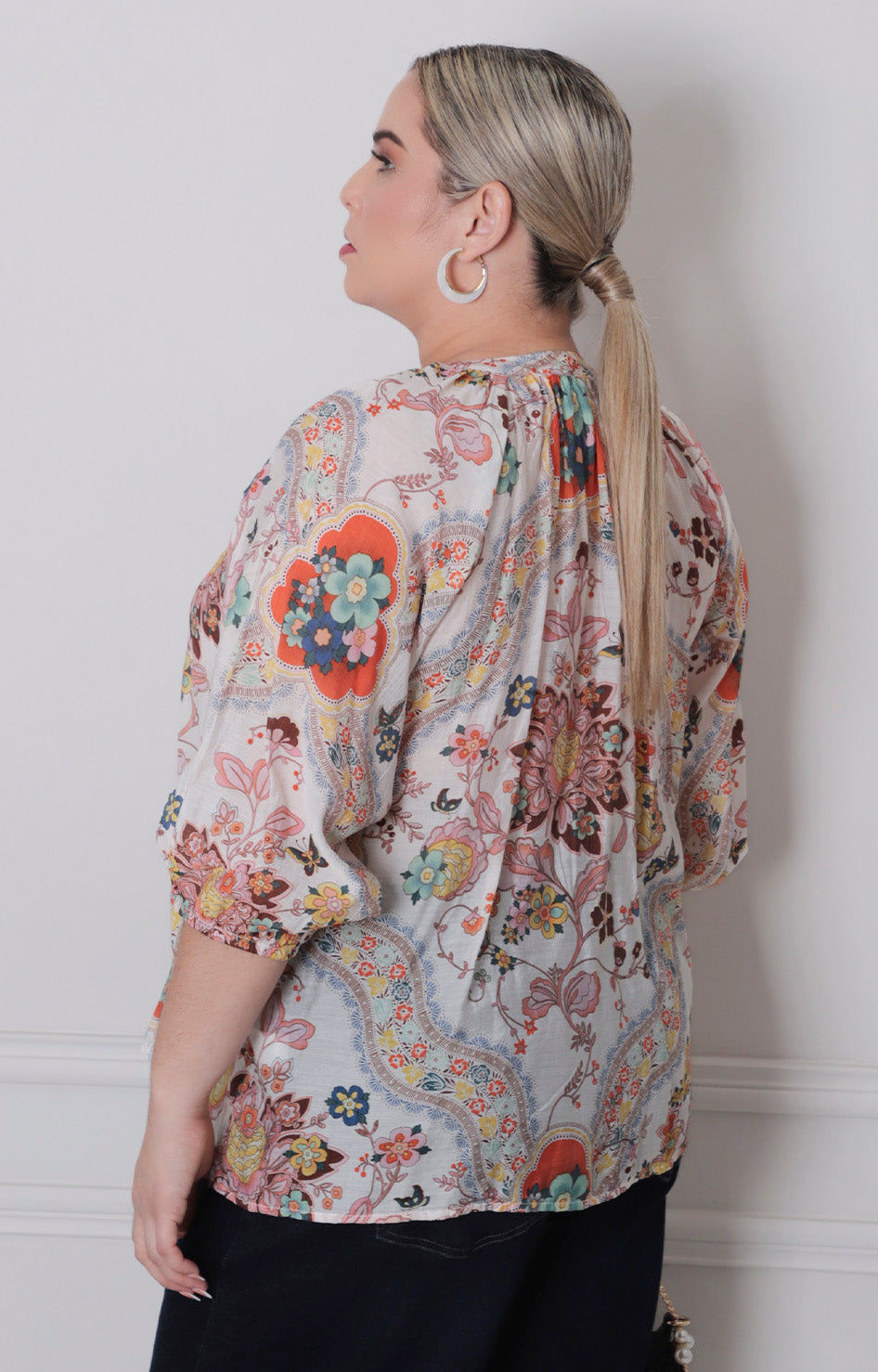 Blusa estampada con detalle de bordado - BLUSAS CURVY Boutiquemirel