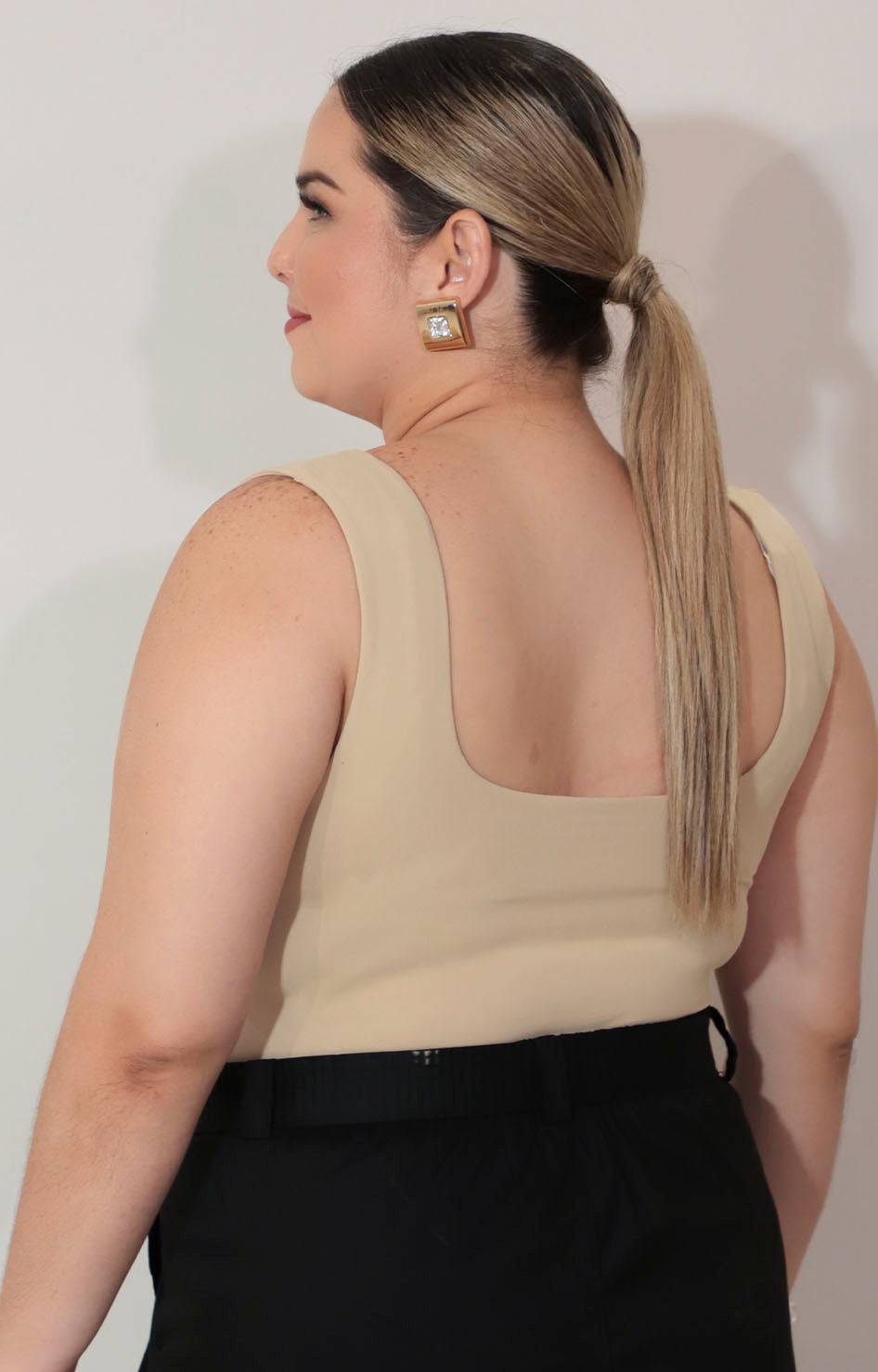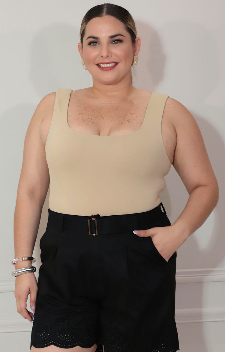 Elegante panty blusa beige de tirantes, diseñada para brindarte comodidad y estilo durante todo el día. Su tono neutro combina perfectamente con cualquier prenda, mientras que su suave tejido se adapta a tu figura para un ajuste ideal. Perfecta para usar sola o como base para tus conjuntos favoritos.