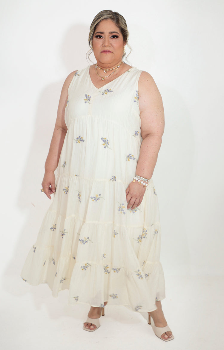 Vestido beige con estampado floral pequeño - VESTIDO Boutiquemirel