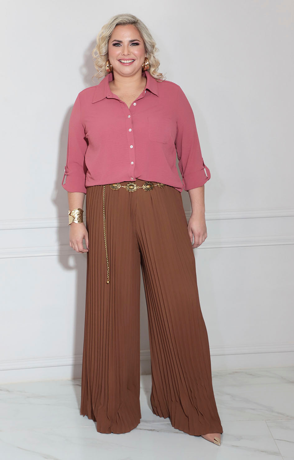 Esta blusa palo de rosa combina elegancia y comodidad con su tejido suave al tacto, ideal para uso prolongado. Su diseño de manga larga ofrece mayor cobertura y versatilidad, mientras que los botones añaden un detalle clásico que facilita su ajuste y uso diario. Perfecta para complementar looks tanto casuales como formales.