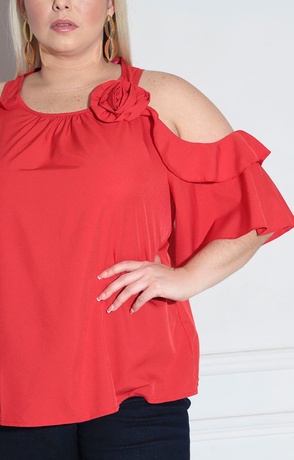 Blusa roja asimétrica confeccionada en tela de calidad premium que ofrece comodidad y elegancia en cada uso. Su diseño asimétrico crea una silueta moderna y favorecedora, mientras que el detalle de flor 3D en relieve añade un toque sofisticado y diferenciador. Perfecta para ocasiones especiales o para elevar tu look cotidiano con un elemento artístico único que destaca por su acabado impecable.