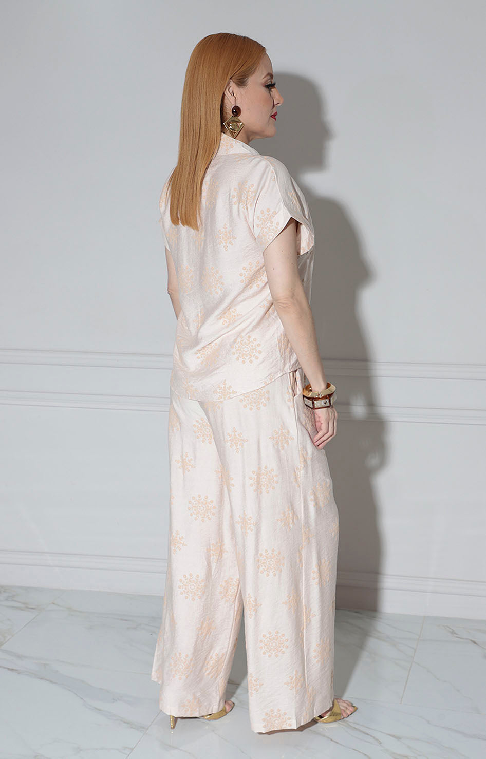 Conjunto de dos piezas confeccionado en tela suave y delicada que proporciona máximo confort durante todo el día. La blusa estilo camisera presenta detalles de bordado en tonos beige que añaden elegancia y sofisticación a tu look. El pantalón recto complementa perfectamente, ofreciendo una silueta limpia y versátil. Ideal para crear outfits profesionales o casuales con facilidad. Una opción versátil que combina calidad, comodidad y estilo contemporáneo.