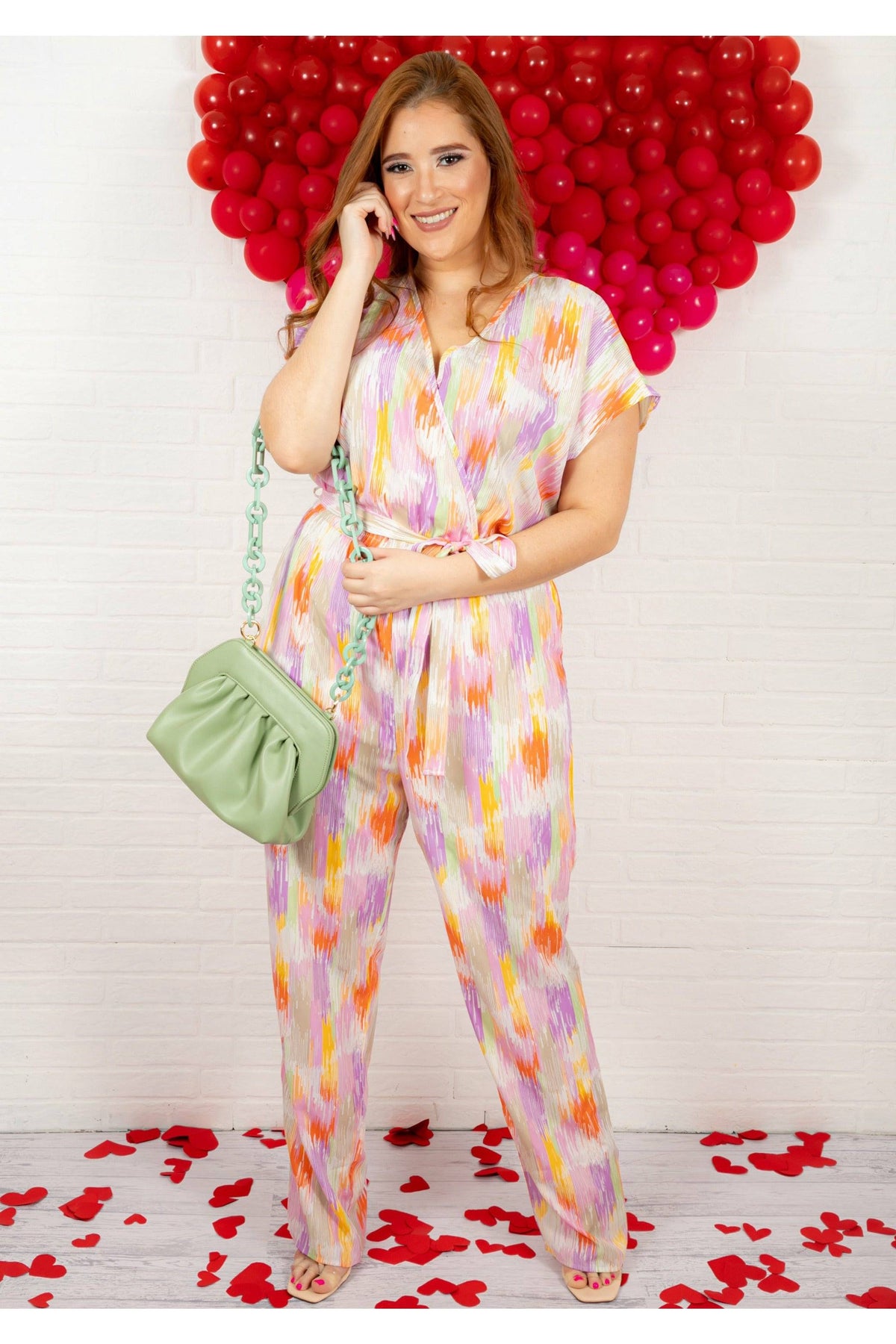 Palazzo cuello en V estampado, resorte en cintura