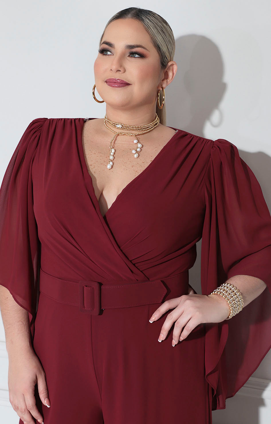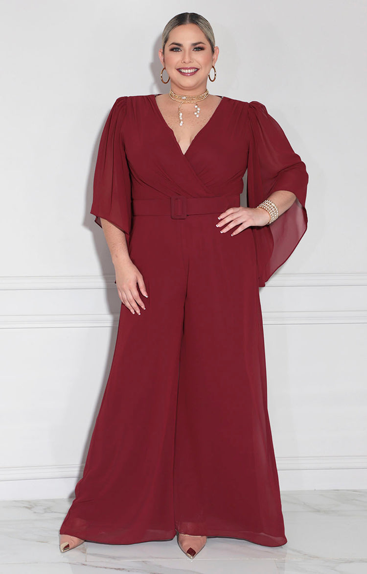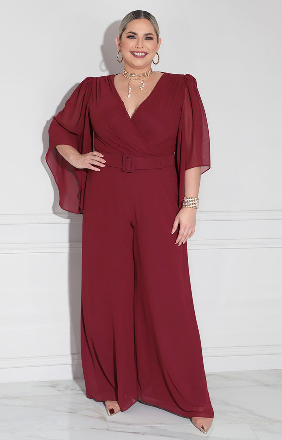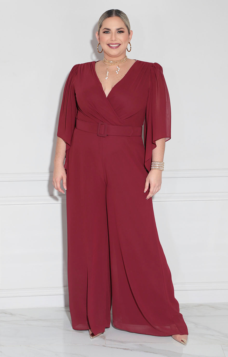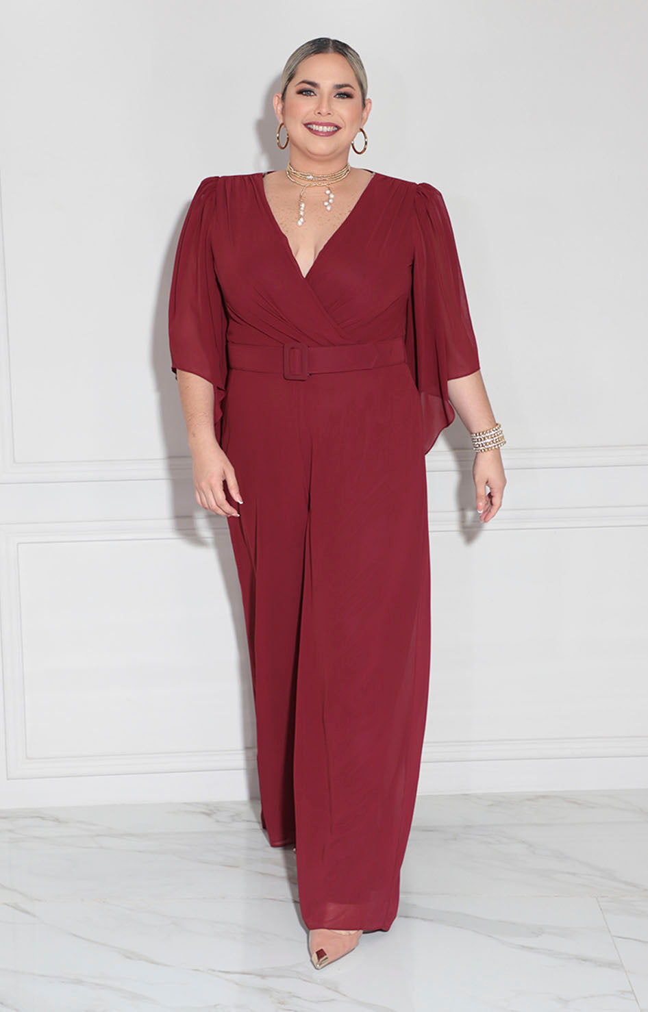 Palazzo vino confeccionado en tela suave que proporciona comodidad durante todo el día. Destaca por sus mangas estilo mariposa que añaden elegancia y movimiento a tu silueta. Incluye cinturón ajustable que define la cintura y permite personalizar el ajuste según tus preferencias. Una pieza versátil ideal para ocasiones formales o looks casuales sofisticados.
