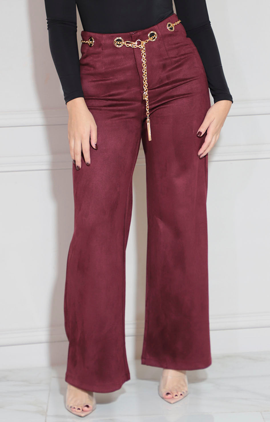 Pantalón de corte recto confeccionado en tela suave con acabado gamuza que proporciona comodidad y elegancia. Diseño de talle alto que estiliza la silueta, complementado con un distintivo lazo metálico en la zona de cintura que añade un toque sofisticado. La textura en gamuza le confiere una apariencia refinada y contemporánea, perfecta para crear looks versátiles tanto en contextos casuales como más formales. Una pieza versátil que combina funcionalidad con estilo.