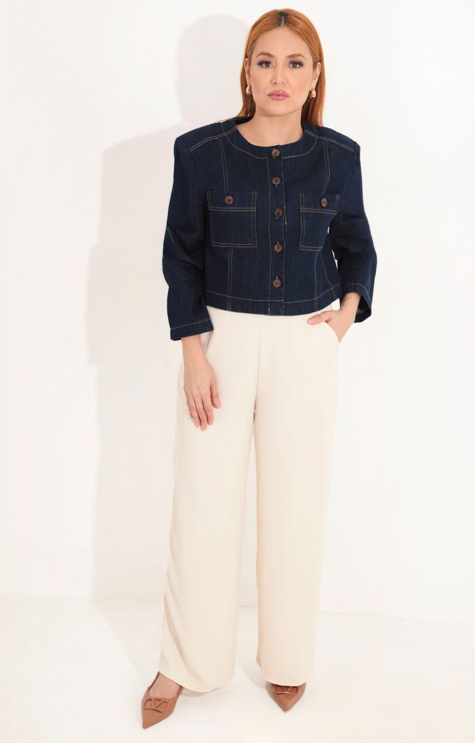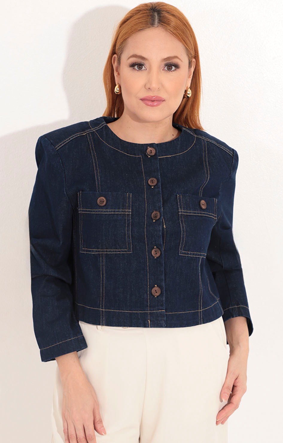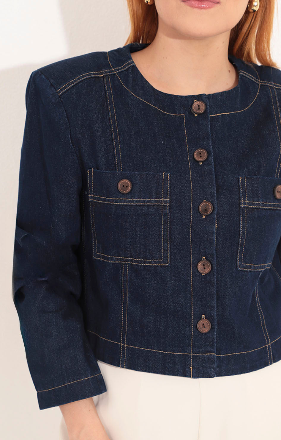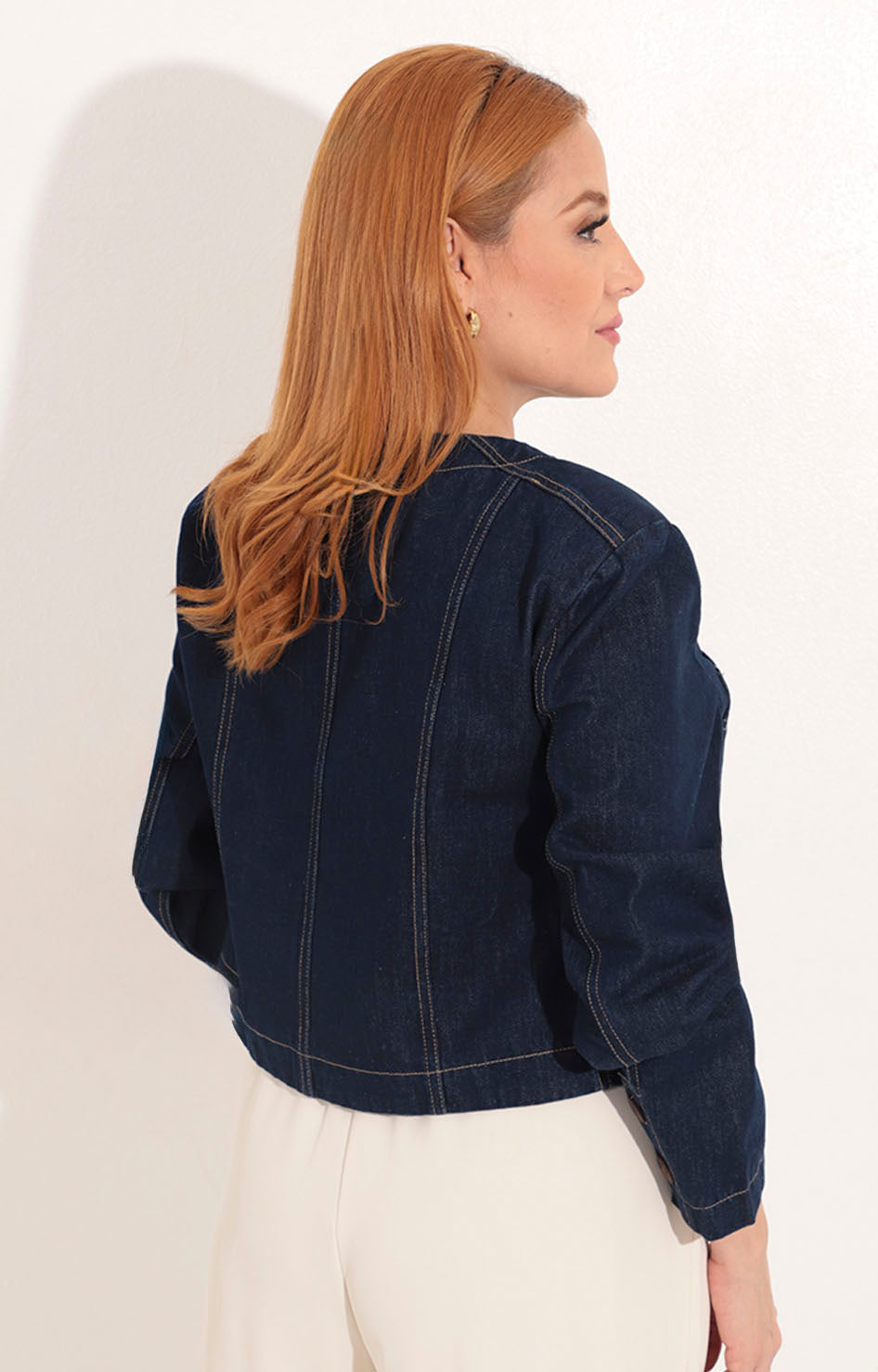 ¡Abrigada tu armario con esta chamarra de mezclilla de cuello redondo! Diseñada para darte un estilo casual y cómodo, esta chamarra es perfecta para cualquier ocasión. La mezclilla resistente te mantendrá abrigada mientras te ves a la moda. ¡Completa tu look con esta chamarra versátil!