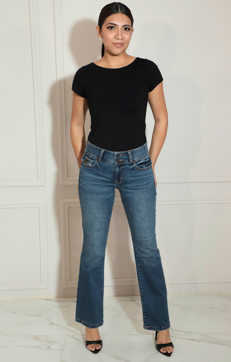 Este pantalón de mezclilla azul obscuro ofrece un estilo clásico y versátil que se adapta a cualquier ocasión. Su tejido resistente garantiza durabilidad y comodidad durante todo el día, mientras que su corte favorecedor realza la figura. Ideal para combinar con diferentes prendas, es una pieza esencial para tu guardarropa.