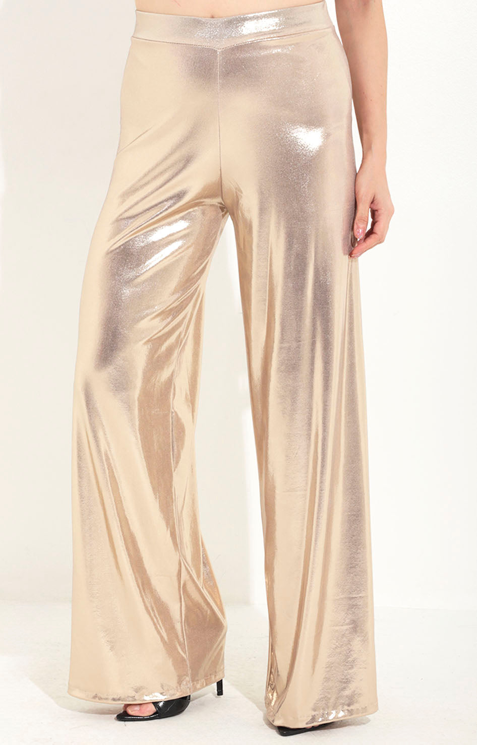 Dale un toque de lujo a tu look con el pantalón dorado metálico. Su acabado brillante y moderno es perfecto para destacar en cualquier evento o para agregar un giro audaz a tu estilo diario. Con un ajuste impecable, este pantalón es todo lo que necesitas para un look impactante.
