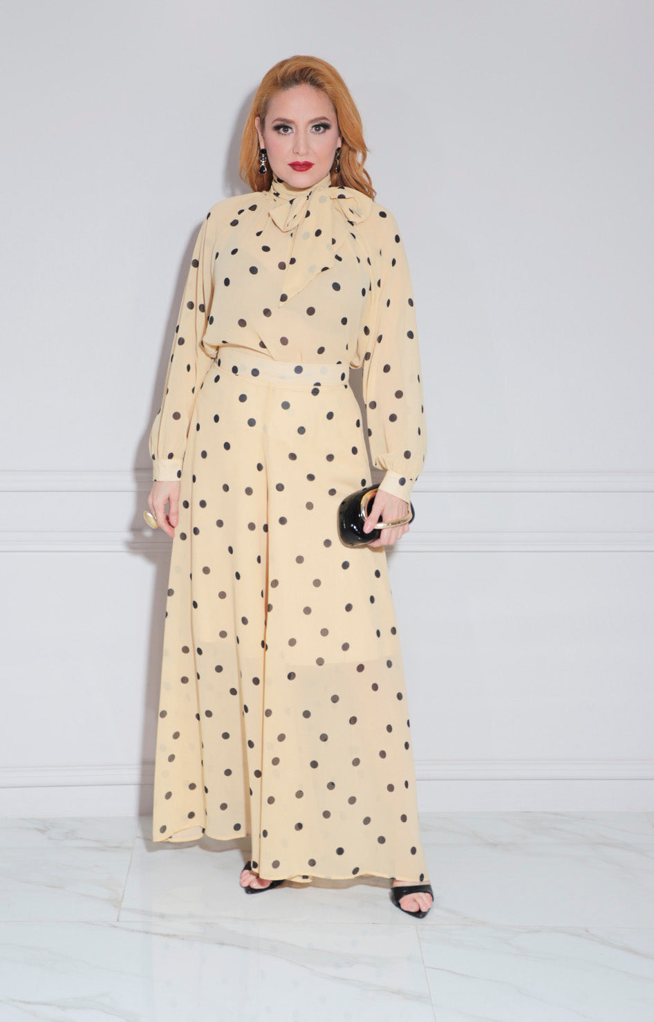 Conjunto de dos piezas en tonos beige con estampado distintivo que combina elegancia y versatilidad. La blusa cuenta con botones frontales que permiten un ajuste personalizado, mientras que el pantalón de corte recto ofrece una silueta clásica y favorecedora. Ideal para crear looks sofisticados tanto en contextos casuales como profesionales. La paleta neutra facilita la combinación con diferentes accesorios y prendas de tu guardarropa.