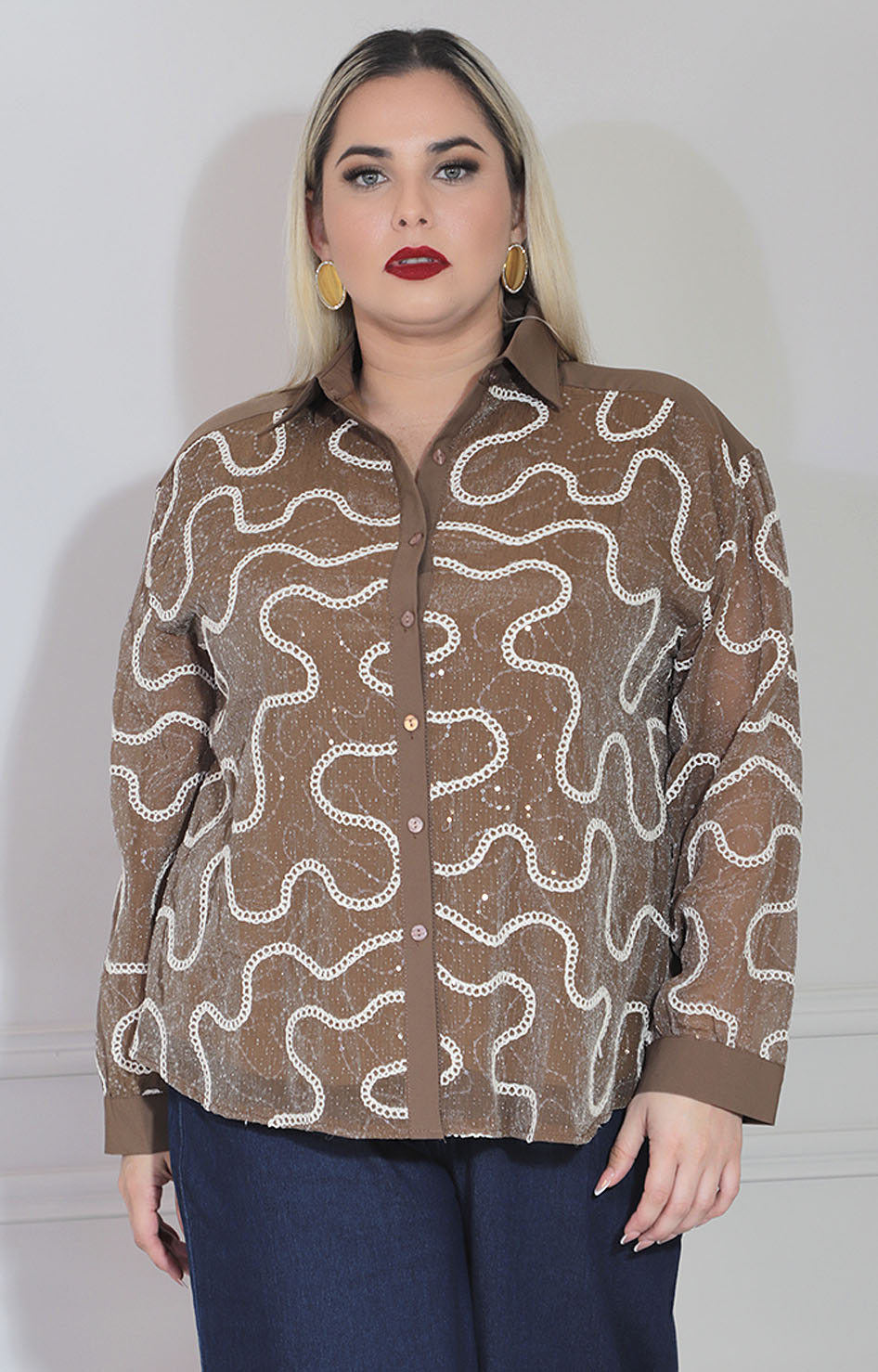 Blusa confeccionada en tela de calidad con tonalidad café y diseño estampado que añade carácter a tu guardarropa. Cuenta con botones frontales funcionales que facilitan su colocación y ajuste, mientras que las mangas largas proporcionan cobertura versátil. Perfecta para crear looks casuales o semi-formales, esta pieza combina practicidad con estilo contemporáneo, adaptándose a diferentes ocasiones y estilos personales.