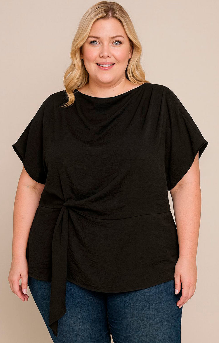 Blusa negra confeccionada en tela de calidad superior que ofrece comodidad y elegancia en cada uso. Destaca por su distintivo lazo lateral que añade un toque sofisticado y versátil al diseño. Perfecta para crear looks profesionales o casuales, esta prenda se adapta a múltiples ocasiones. Su corte favorecedor y acabados impecables la convierten en una pieza esencial del guardarropa moderno.