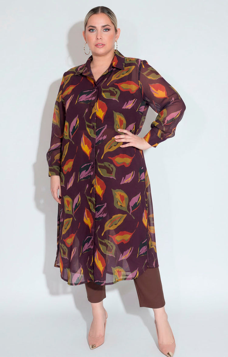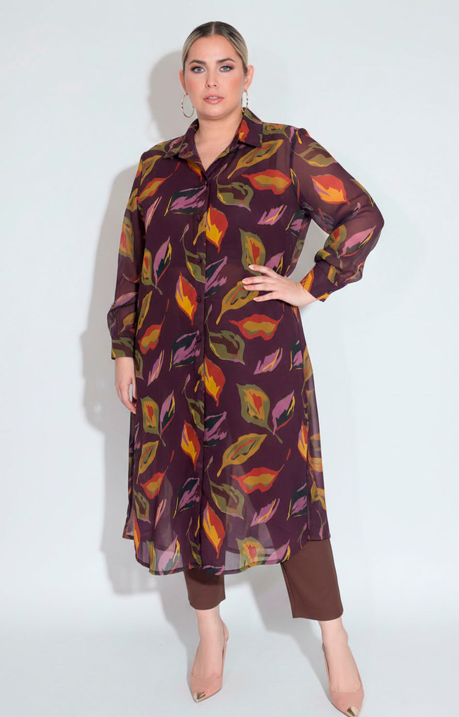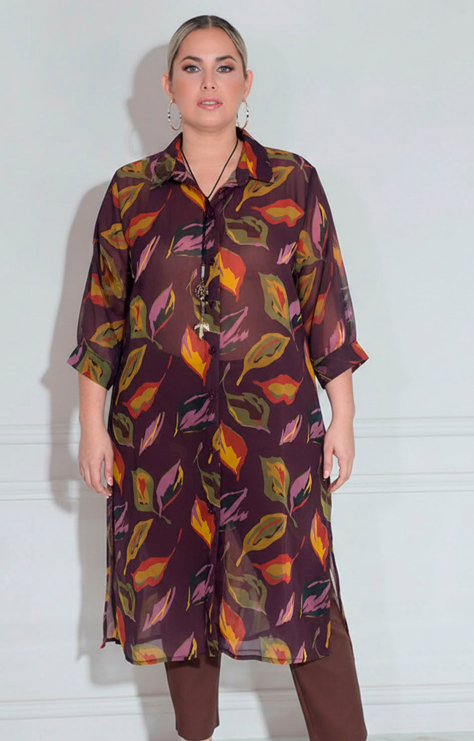 Este blusón morado con hojas es ideal para mujeres con curvas que buscan comodidad y estilo en otoño 2025. Su tela ligera y suave al tacto ofrece una sensación fresca y agradable, mientras que el diseño tipo camisero aporta un toque clásico y versátil. Perfecto para combinar con prendas de temporada, realza la silueta con un ajuste cómodo que favorece la figura sin sacrificar libertad de movimiento. Una opción elegante y funcional para renovar tu guardarropa esta temporada.