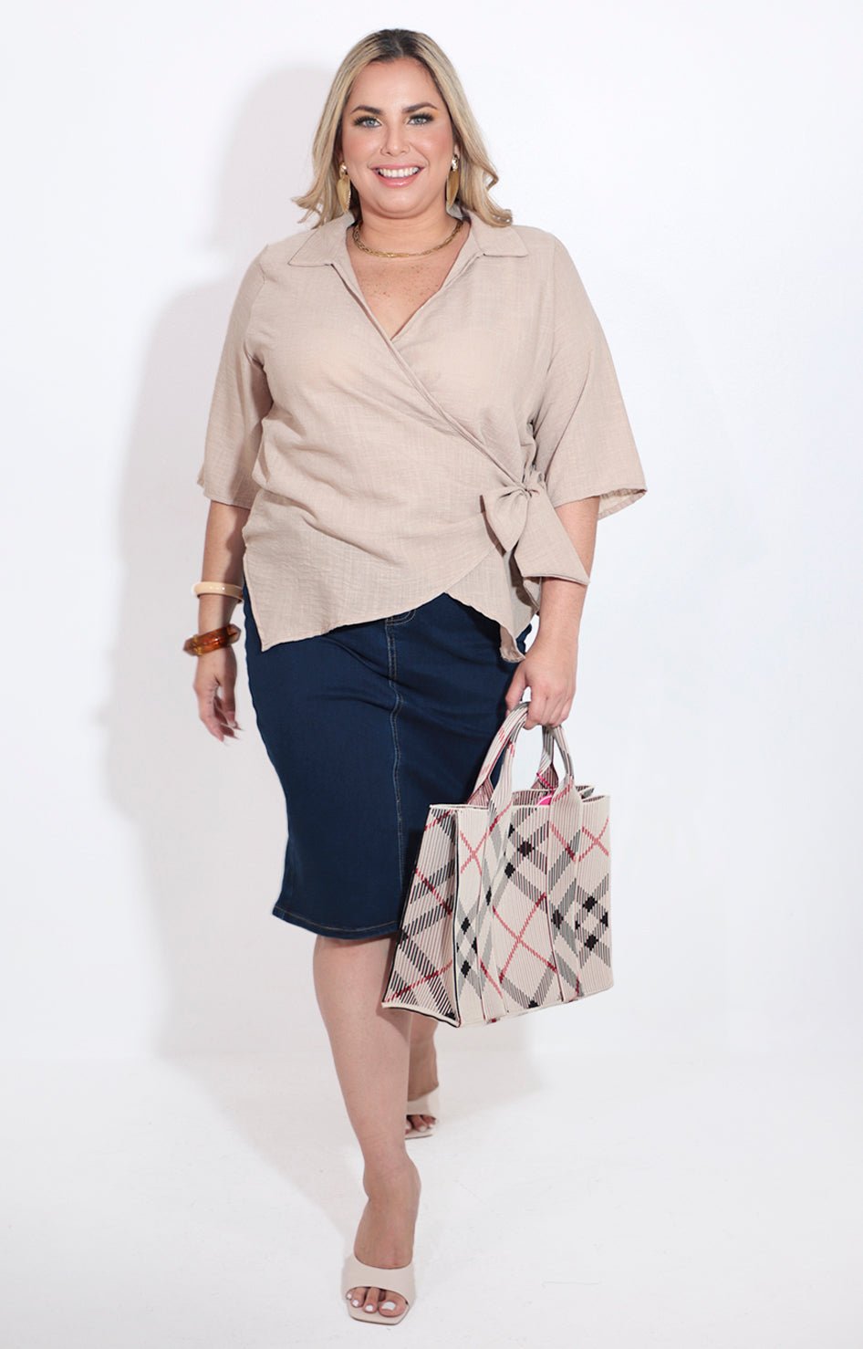 Esta falda midi de mezclilla es perfecta para cualquier ocasión. Con su diseño clásico y cómodo material, esta falda te ayudará a lucir elegante y a la moda. Combínala con una blusa o camisa para un look casual, o con un top más elegante para una ocasión especial. ¡Haz una declaración de estilo con esta falda versátil!