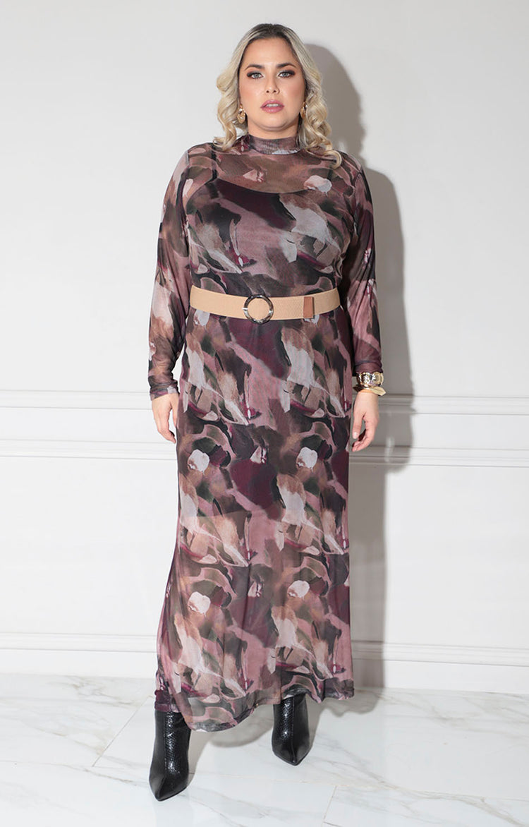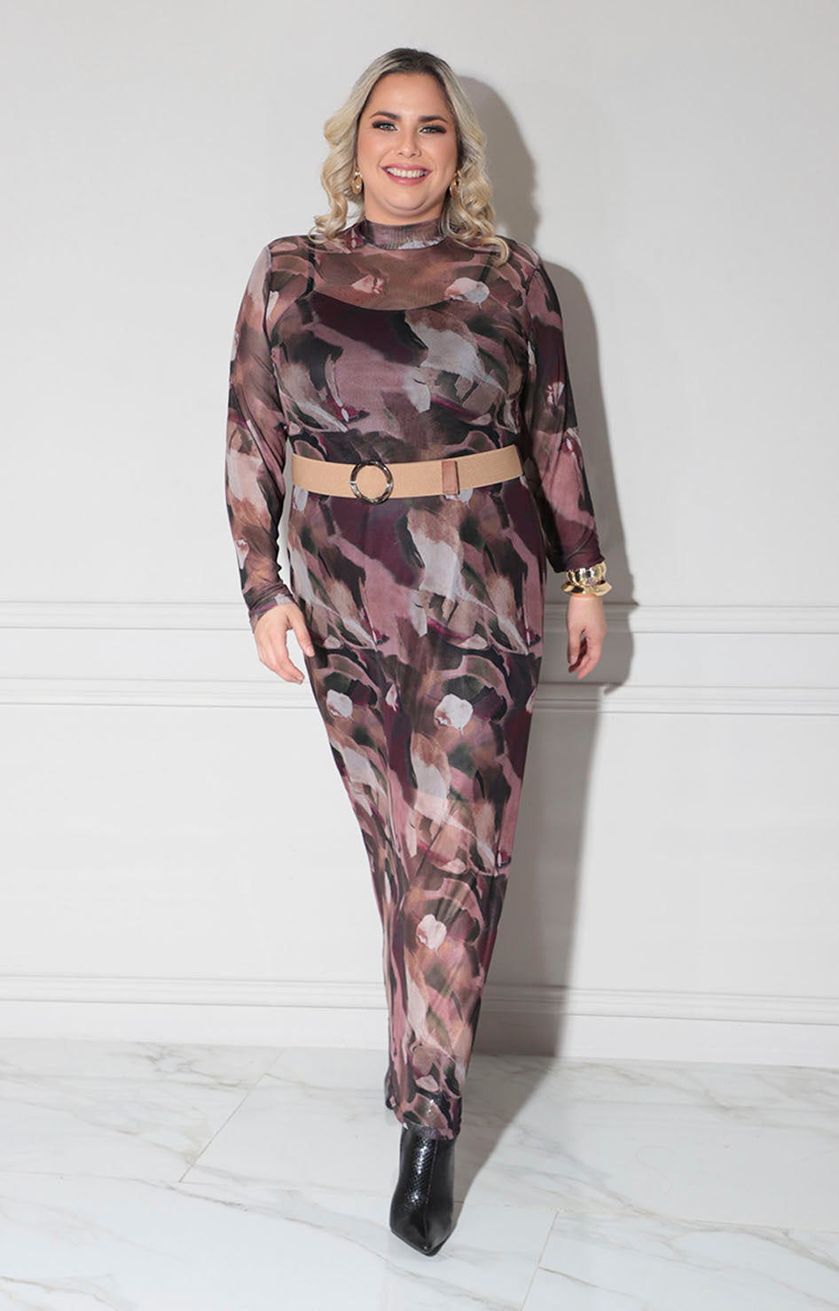 Vestido confeccionado en tela suave que proporciona comodidad durante todo el día. Diseño de manga larga con cuello circular alto que ofrece elegancia y versatilidad para diferentes ocasiones. Incluye cinturón color miel que define la silueta y permite ajustar el largo según tus preferencias. Una pieza versátil que combina estilo clásico con detalles modernos, perfecta para crear looks sofisticados tanto en ambientes formales como casuales.
