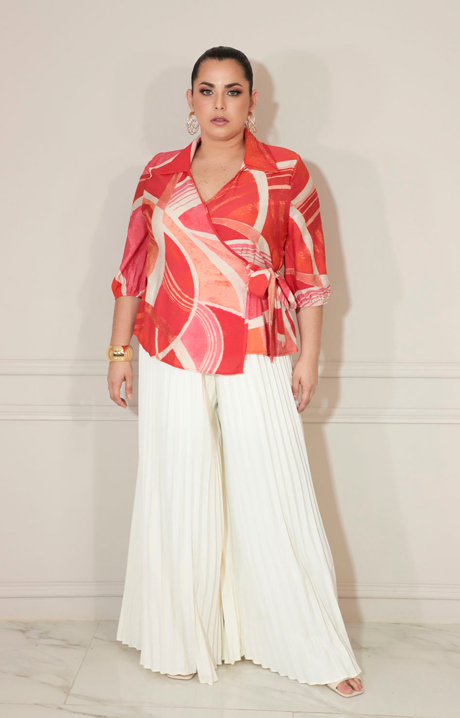 Esta blusa naranja envolvente combina estilo y comodidad con su diseño ajustable mediante un lazo que realza la figura. Su estampado vibrante aporta un toque moderno y fresco, ideal para diversas ocasiones. Perfecta para quienes buscan una prenda versátil que destaque sin sacrificar elegancia.
