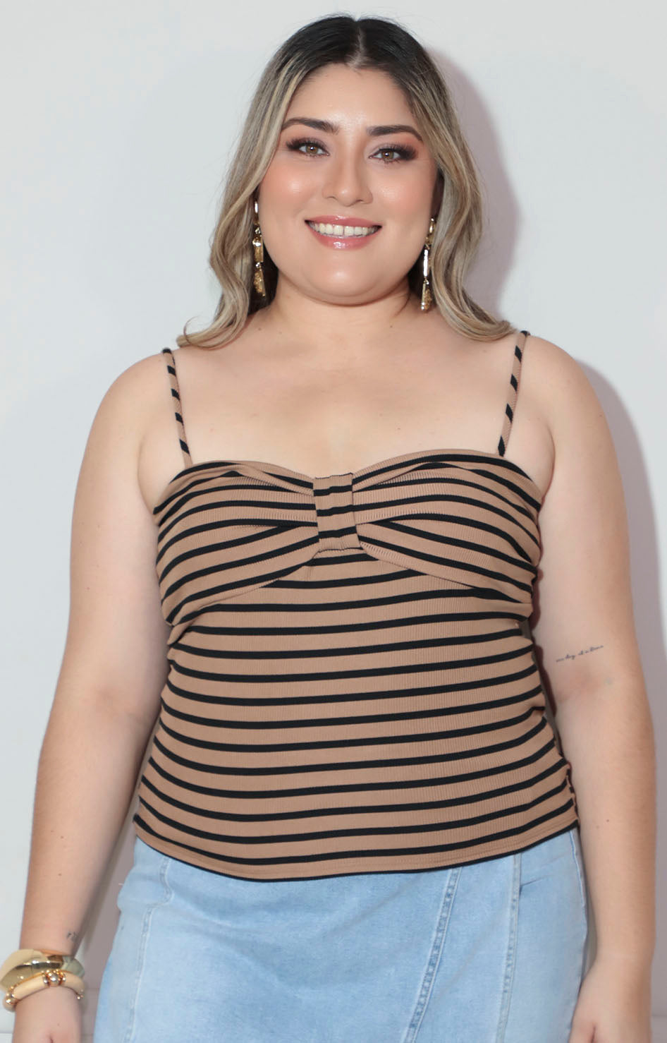 Esta blusa café con rayas y tirantes combina estilo y comodidad, ideal para looks casuales y frescos. Su diseño ligero y ajustado permite libertad de movimiento, mientras que las rayas añaden un toque moderno y versátil para diversas ocasiones. Perfecta para quienes buscan una prenda práctica sin sacrificar elegancia.