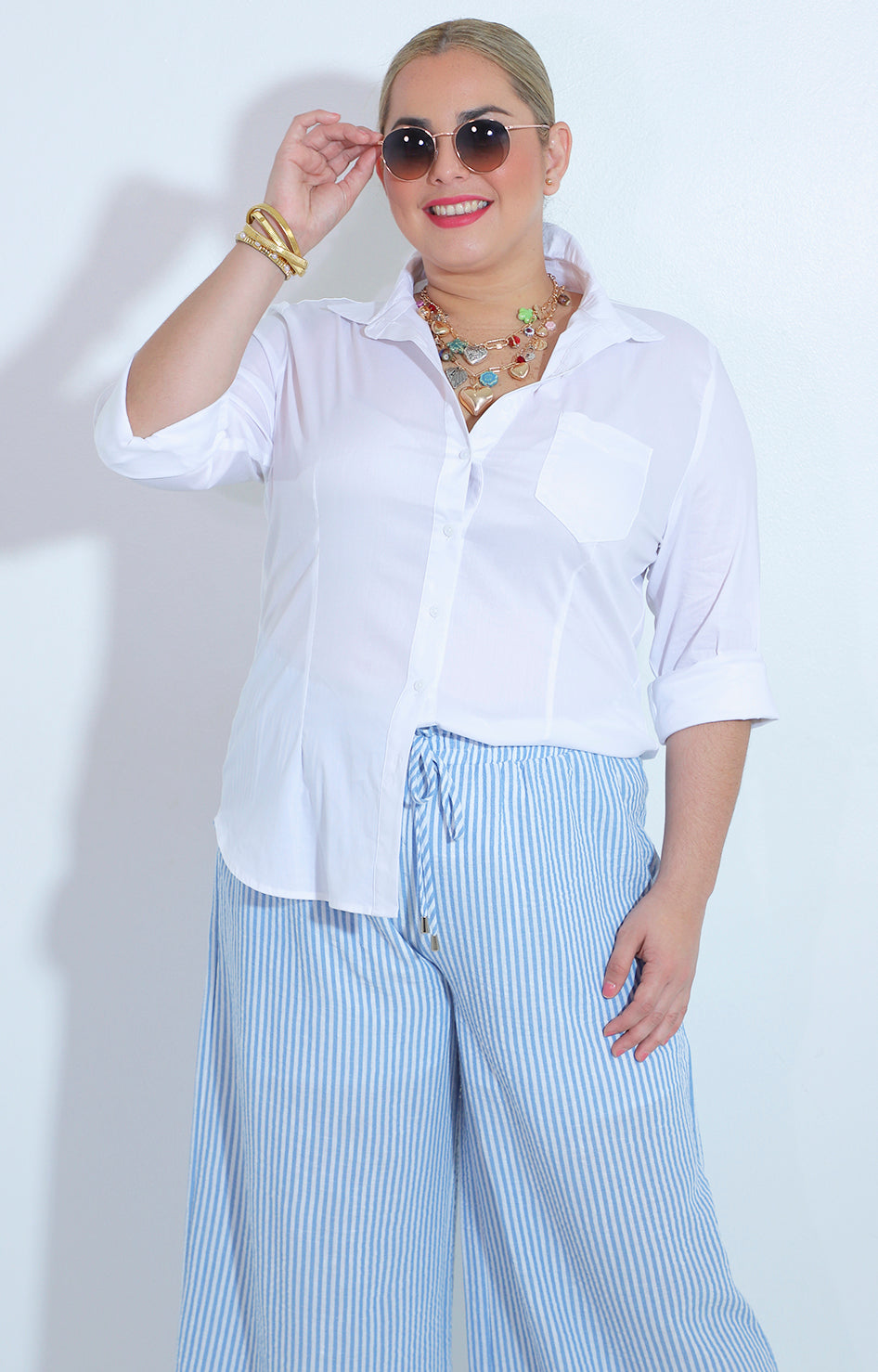 Esta camisera blanca combina elegancia y versatilidad, ideal para cualquier ocasión formal o casual. Su confección cuidadosa garantiza un ajuste cómodo y un acabado impecable, facilitando un estilo profesional y pulcro. Perfecta para complementar tu guardarropa con una prenda básica que nunca pasa de moda.