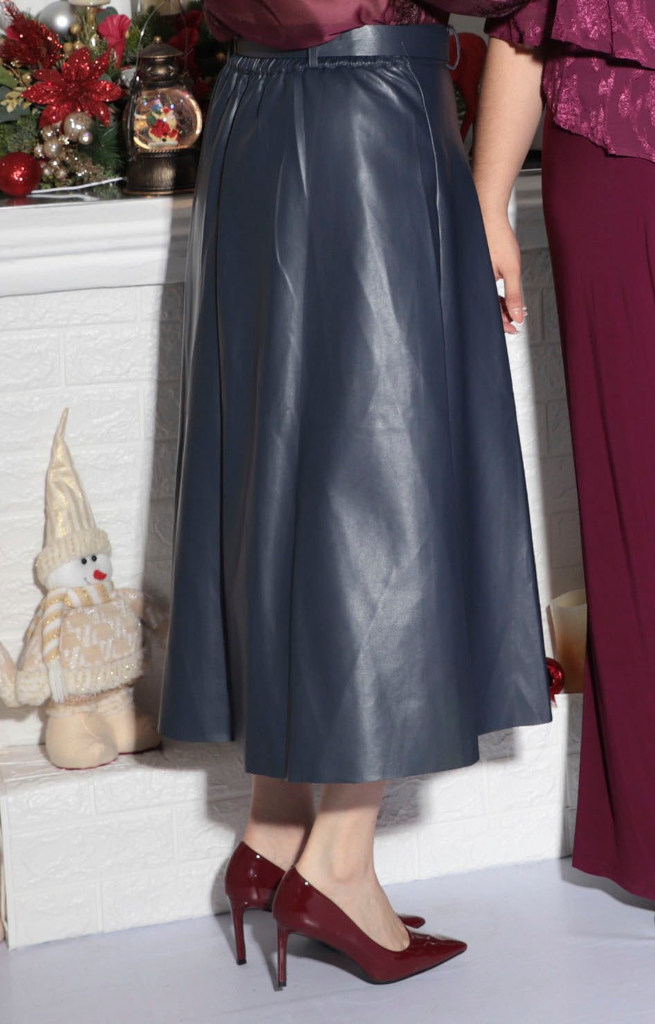 Falda confeccionada en vinipiel azul, un material versátil que combina durabilidad con un acabado moderno y sofisticado. Su textura lisa y resistente la hace ideal para crear looks contemporáneos con facilidad de mantenimiento. Perfecta para transiciones de estación, esta pieza se adapta tanto a outfits casuales como a propuestas más elaboradas. Un básico versátil que eleva cualquier conjunto.