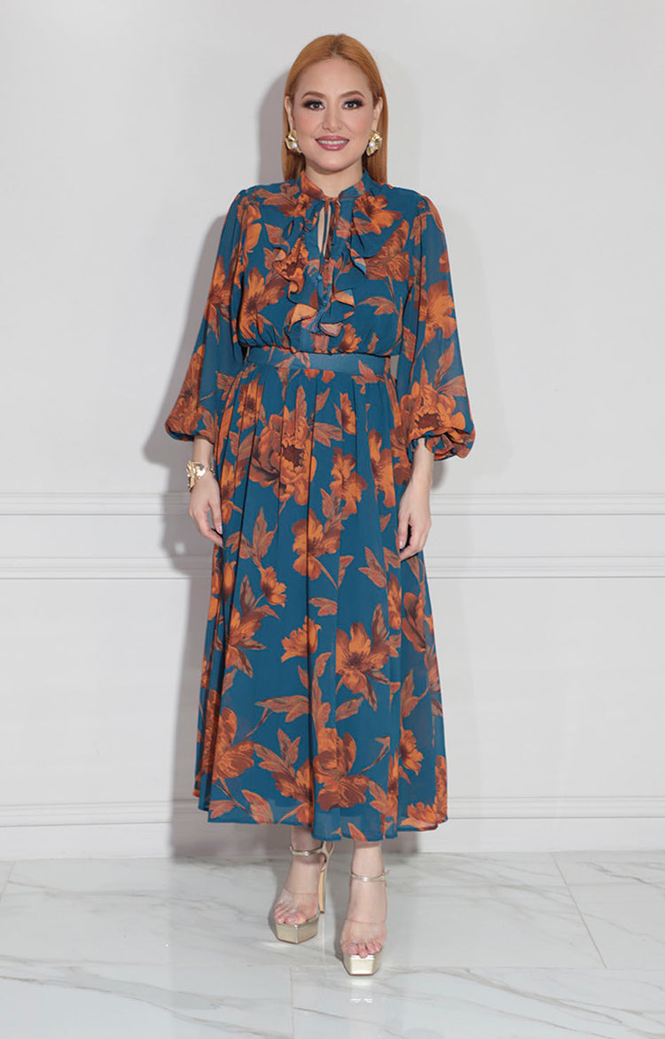 Vestido estampado confeccionado en tela de calidad superior, diseñado con manga larga que proporciona cobertura elegante y versátil. Cuenta con un lazo ajustable en la cintura que permite personalizar el ajuste según tu preferencia, creando una silueta favorecedora y cómoda. Perfecto para ocasiones casuales o semi-formales, este diseño combina estilo contemporáneo con funcionalidad práctica. La combinación de estampado y detalles estructurados lo convierte en una pieza versátil para tu guardarropa.