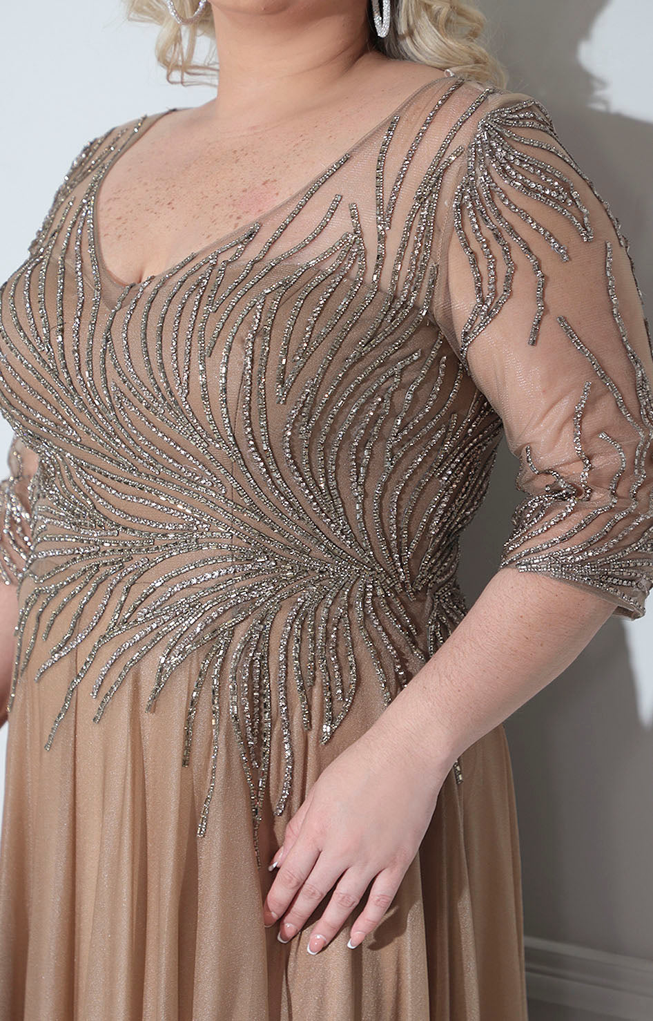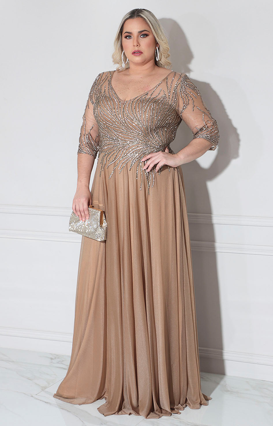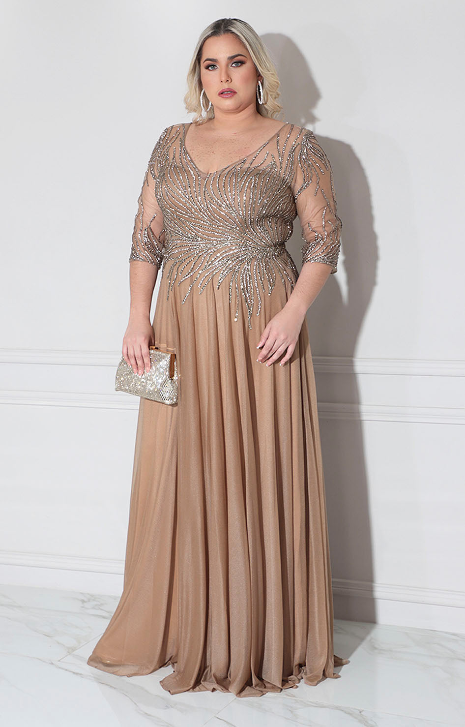 Vestido confeccionado en tela de seda suave que proporciona elegancia y comodidad. Presenta un escote en V que estiliza la silueta, mangas estilo 3/4 ideales para transiciones de temporada, y un faldón fluido que favorece el movimiento. El bordado en pedrería en la zona superior añade sofisticación y brillo estratégico. Cierre en espalda para un ajuste seguro y preciso. Una pieza versátil para ocasiones especiales que combina textura premium con detalles artesanales.