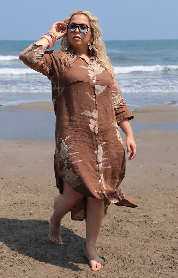V*3-26*MEO  MELI*NV-1579*CAFE - VESTIDO LARGO CURVY Boutiquemirel