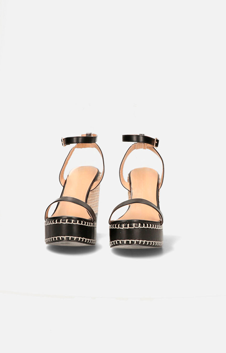 Esta hermosa plataforma está hecha de madera de alta calidad, pintada en un elegante color negro y con fibra natural entrelazada en ella. Brinda un soporte resistente y duradero, además de una apariencia sofisticada. Ideal para dar un toque moderno a tu hogar u oficina.