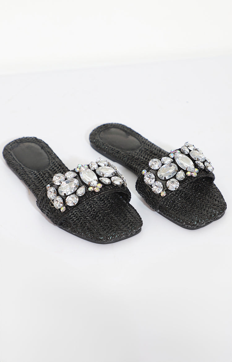 Disfruta de un estilo elegante con nuestras sandalias negras con pedrería. La pedrería añade un toque de brillo mientras que las sandalias negras son una opción versátil para cualquier ocasión. Con un diseño sofisticado y cómodo, estas sandalias son la opción perfecta para lucir glamurosa durante todo el día. ¡Haz que tus pies brillen con estas hermosas sandalias!