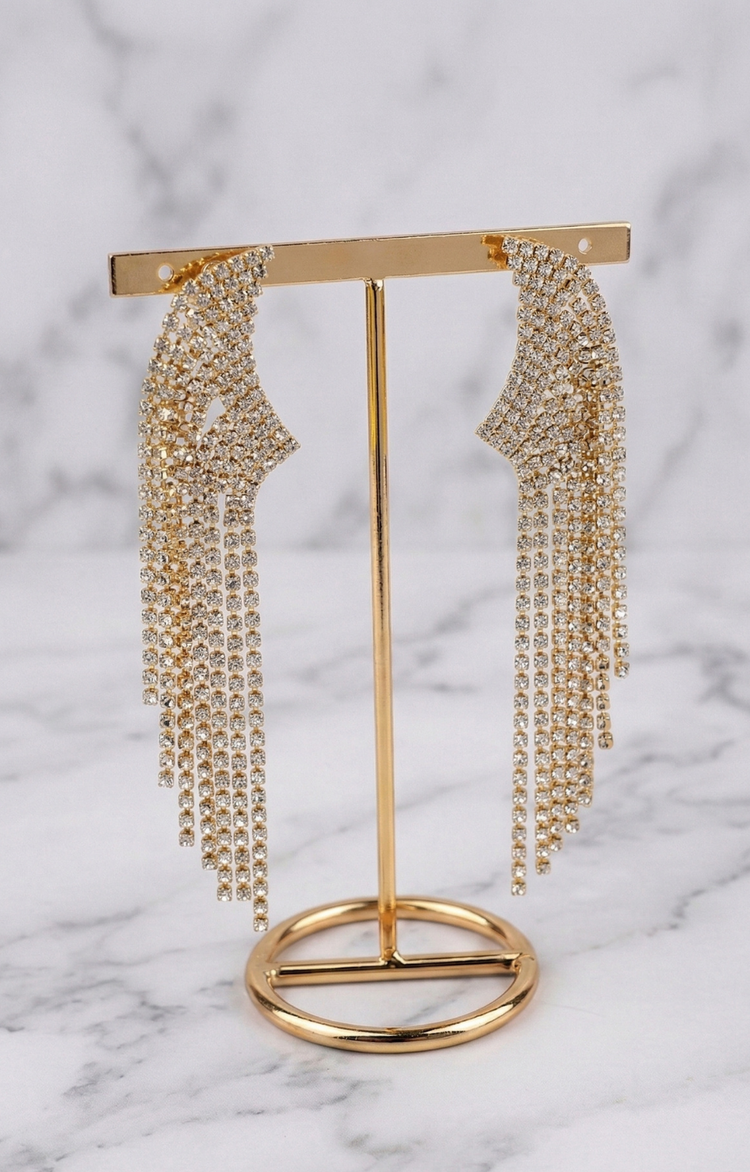Aretes Cascada de Cristales con Dorado que brillan con elegancia. Diseñados con cristales transparentes que crean un efecto de cascada delicado, combinados con detalles dorados que añaden sofisticación. Perfectos para complementar cualquier look, desde casual hasta formal. Los cristales reflejan la luz de manera hermosa, creando un brillo cautivador. Ideales para quienes buscan accesorios que combinen estilo y luminosidad. Un toque de glamour que realza tu belleza natural.