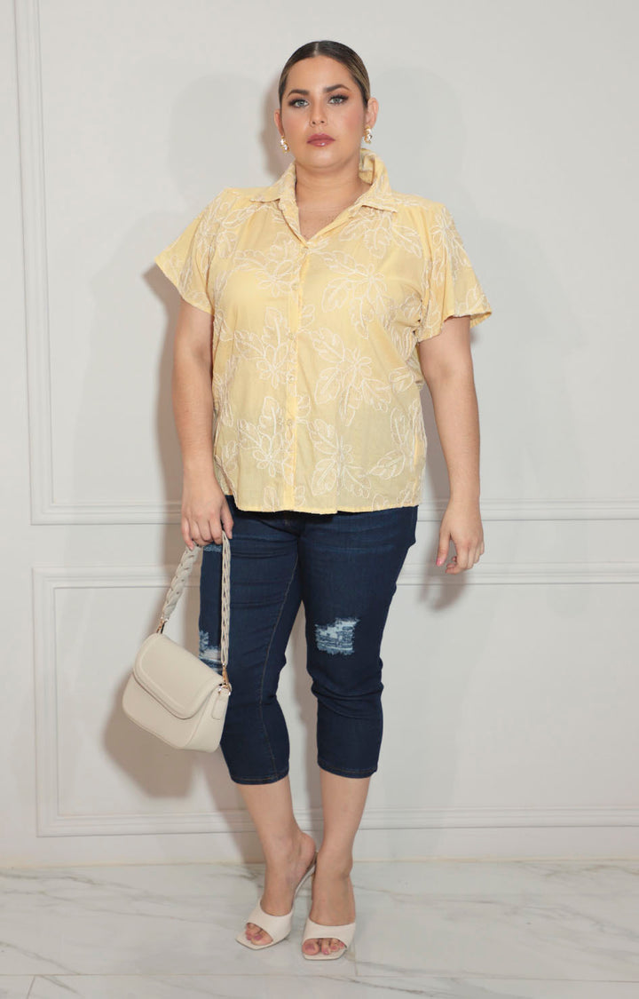Esta blusa amarilla destaca por su delicado bordado y botones frontales que añaden un toque de elegancia y detalle artesanal. Su color vibrante ilumina cualquier conjunto, mientras que el diseño cómodo y femenino te acompaña durante todo el día con estilo y frescura. Ideal para quienes buscan una prenda versátil que combine tradición y modernidad.