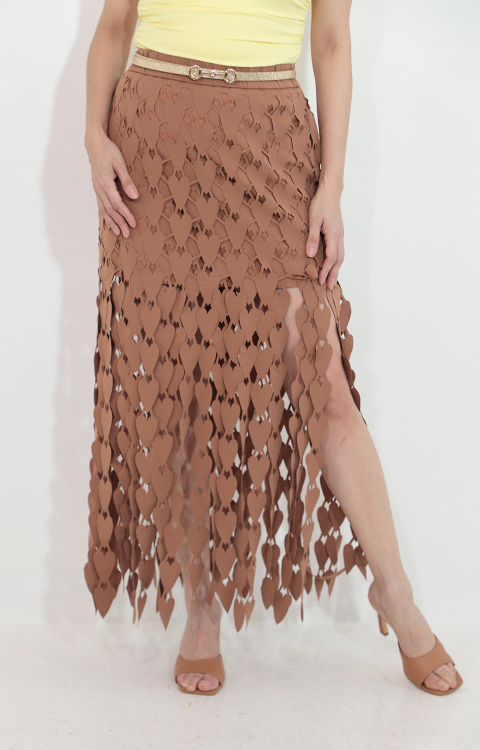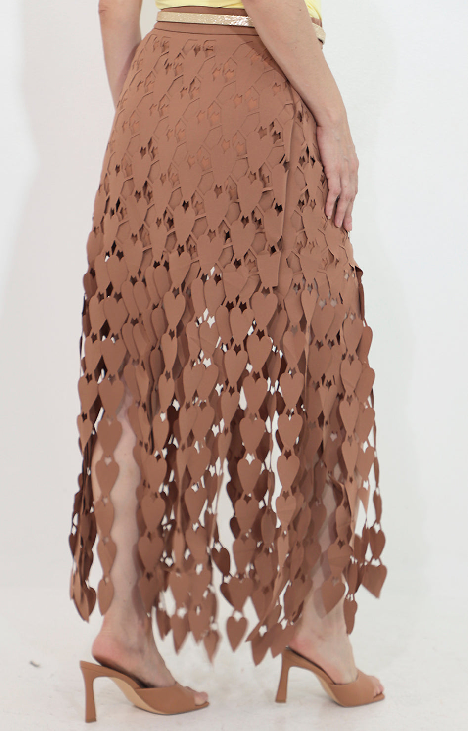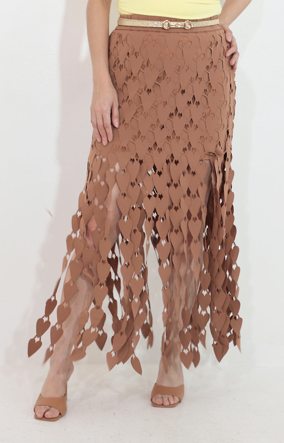 Elegante falda café elaborada en guipiur, un encaje delicado que realza tu figura con un toque sofisticado. Su diseño versátil te permite lucirla en ocasiones especiales o combinarla para un look casual-chic. El acabado artesanal del guipiur garantiza una prenda única y duradera.