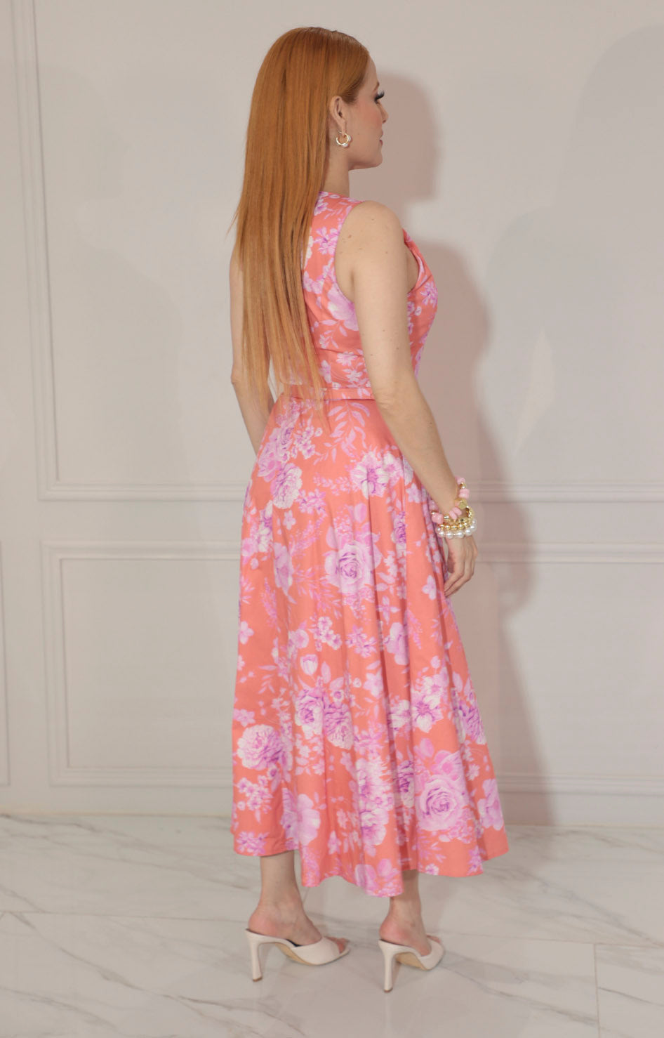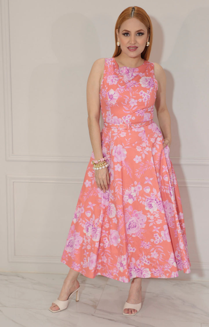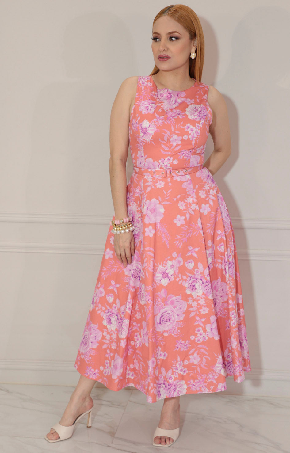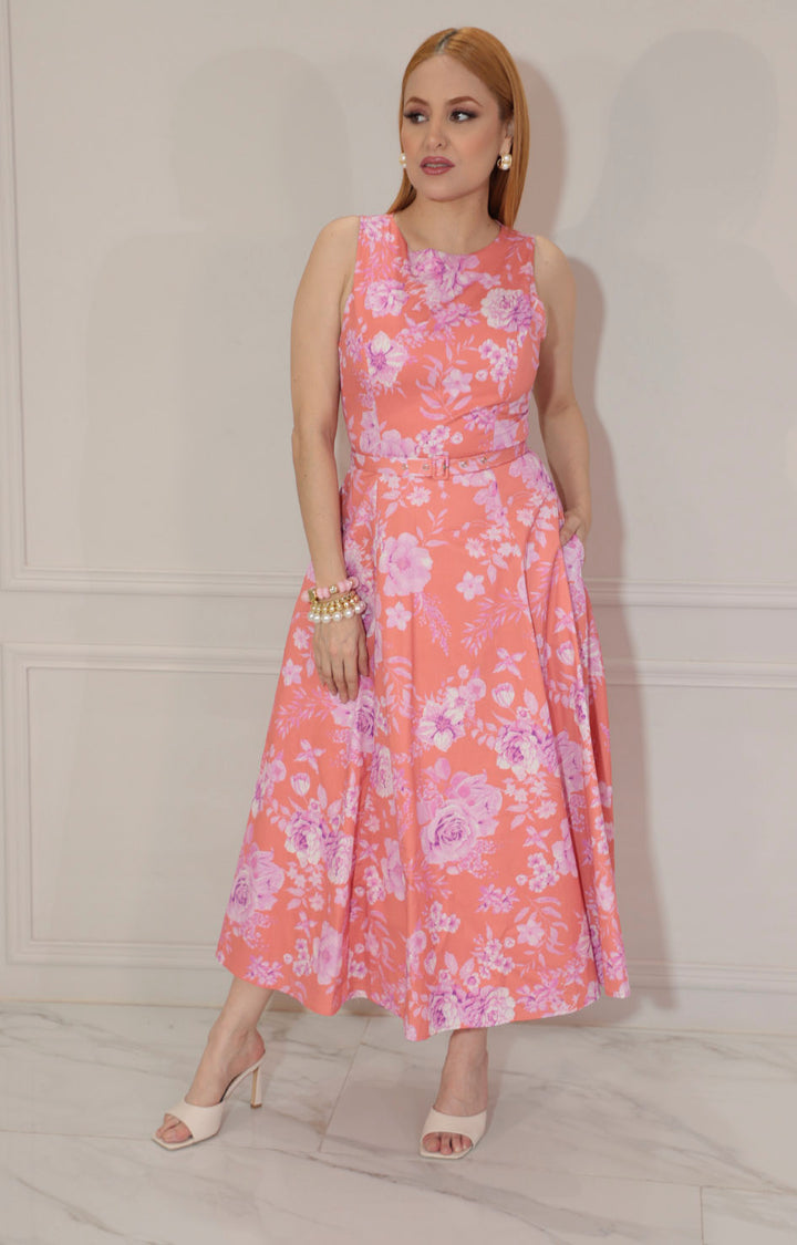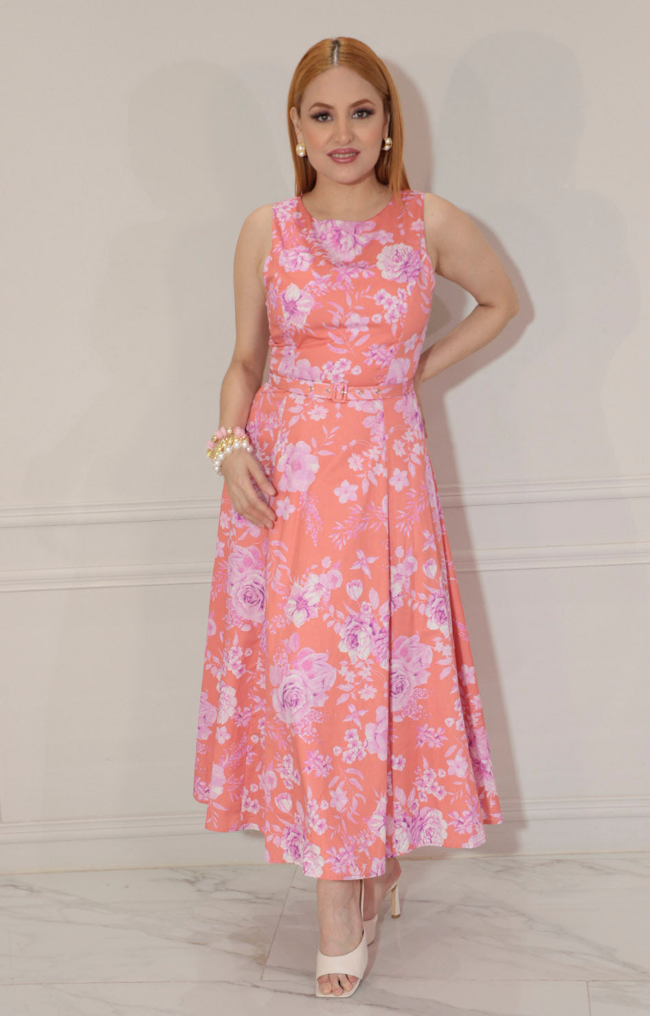 Este vestido rosa estampado combina estilo y comodidad, ideal para cualquier ocasión. Su cinturón ajustable realza la figura, ofreciendo un ajuste personalizado y favorecedor. Perfecto para quienes buscan un look femenino y elegante con un toque de frescura.